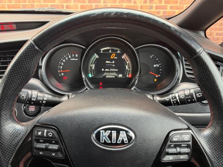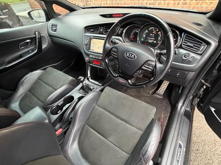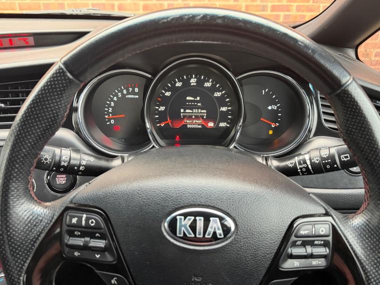 Kia Ceed 1.6 T GDi GT Tech from 2015 boasts a comprehensive service history, ensuring excellent provenance for this well maintained vehicle. It features a responsive 1.6 litre petrol engine ⭐️COMES WITH 12 MONTHS AA BREAKDOWN RECOVERY 3 MONTHS WARRANTY FREE OF CHARGE AND A FRESH MOT & SERVICE FULLY HPI CLEAR AND CHECKED⭐️ for your peace of mind. Inside, you'll find a Smart Entry System for keyless entry, Bluetooth connectivity for both music streaming and voice recognition, and Xenon headlights with auto levelling for superior visibility. Parking is made easier with the integrated reversing camera system and rear parking assistance. Experience impressive performance with the Ceed's ability to accelerate from 0 to 60 miles per hour in just 7.4 seconds, a figure that highlights its dynamic capability compared to many other vehicles in its class. This model also offers generous boot space, making it a practical choice for everyday use and longer journeys alike..