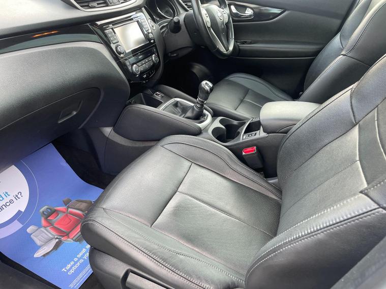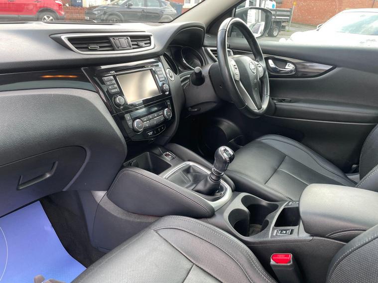FULL SERVICE HISTORY, FULL BLACK LEATHER, SAT NAV, HEATED SEATS , FULL GLASS PANROOF, REAR VIEWCAMERA, FRONT & REAR PARKING SENSORS, ELECTRIC FOLDING MIRRORS, TWO REOTE KEYS, 12 MONTHS MOT, COMPREHENSIVE WARRANTY/ AA BREAKDOWN COVER* HPI CHECKED, LOW RATE FINANCE FROM 4.99%, FINANCE TODAY, SUBJECT TO STATUS, PRE ARRANGE YOUR FINANCE WITH US - APPLY FINANCE INSTANTLY THROUGH OUR WEBSITE - VIDEO AVAILABLE ON REQUEST, WE OFFER AA DRIVEAWAY WITH 5 DAYS INSURANCE, PLEASE VISIT OUR WEBSITE ON dealer's website FOR MORE INFO OR OUT OF HOURS VIEWING. CALL US ON 01772581529, This 2016 Nissan Qashqai dCi Tekna boasts a full service history and a clear vehicle history check, offering you peace of mind. This popular model features a 1.6 litre diesel engine, meeting Euro 6 emissions standards. Inside, you'll find a luxurious panoramic sunroof with a one touch shade, heated front seats for those colder mornings, and seamless Bluetooth integration for your telephone. The Tekna trim also includes automatic headlights and a blind spot warning system, enhancing both convenience and safety.With an impressive fuel economy of 61 miles per gallon, this Qashqai is designed to be economical to run. Its low CO2 emissions and low insurance group further highlight how this vehicle offers a more cost effective ownership experience compared to many others in its class. A 6 month warranty and a 12 month MOT provided on purchase ensure you are well covered..