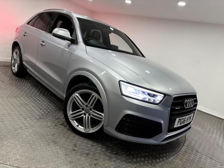 This 2016 Audi Q3 TDI S line Plus finished in Floret Silver with Full Grey Leather presents a superb example of this popular compact SUV. Powered by a robust 2.0 litre diesel engine and featuring a capable four wheel drive system, this Euro 6 compliant model is equipped with the desirable S line Plus trim and full of optional extras. You'll appreciate the convenience of Advanced Key with keyless entry, allowing effortless access. The door mirrors are heated, electrically adjustable, folding, and feature auto dimming on the driver's side for enhanced visibility and comfort. Inside, the heated electric front seats offer a touch of luxury, while rear parking sensors make manoeuvring in tight spaces a breeze. Automatic activation for the headlights ensures you always have optimal illumination.The vehicle is supplied with 2 keys and has recorded services at 18k, 37k, 44k, 51k, 55k (Including the Cambelt) 61k and 78k. The vehicle will go through our workshop for a full inspection which will include a fresh MOT.This Audi Q3 delivers an impressive blend of performance and efficiency. With an acceleration of 0 to 60 miles per hour in just 7.6 seconds, it offers a responsive driving experience that surpasses many similar vehicles. Furthermore, its fuel economy is a notable highlight, achieving an excellent 51 miles per gallon, making it an economical choice for both city driving and longer journeys..