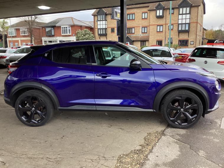 SERVICE HISTORY , 2 KEYS PRESENT **READ OUR HONEST CUSTOMER 5 STAR REVIEWS ON GOOGLE, YOU'LL BE PLEASED YOU CHOSE US** PRICED AT THE ''BUY IT NOW PRICE'' SAVE £100'S!!! Discover this 2021 Nissan Juke DIG-T Tekna, a stylish and feature packed compact SUV. This Euro 6 compliant model boasts a responsive 1.0L petrol engine and offers an impressive fuel economy of 46 miles per gallon. Inside, you'll find a wealth of technology designed for your convenience and enjoyment, including Android Auto and Apple CarPlay integration, allowing seamless connection of your smartphone. Stay entertained and connected with USB and AUX socket inputs, alongside Bluetooth connectivity for hands free calls and music streaming. The Intelligent Key with Start Push Button provides keyless entry and effortless ignition, while the premium Bose Personal Plus Audio System delivers an immersive sound experience. Manoeuvring is made easier with rear parking sensors.This Nissan Juke DIG-T Tekna stands out with its excellent fuel efficiency, indicating it is more economical to run than many similar vehicles. Its low CO2 emissions also contribute to its appeal. The combination of its modern technology, comfortable interior, and practical features makes this Juke a compelling choice for those seeking a versatile and enjoyable driving experience..