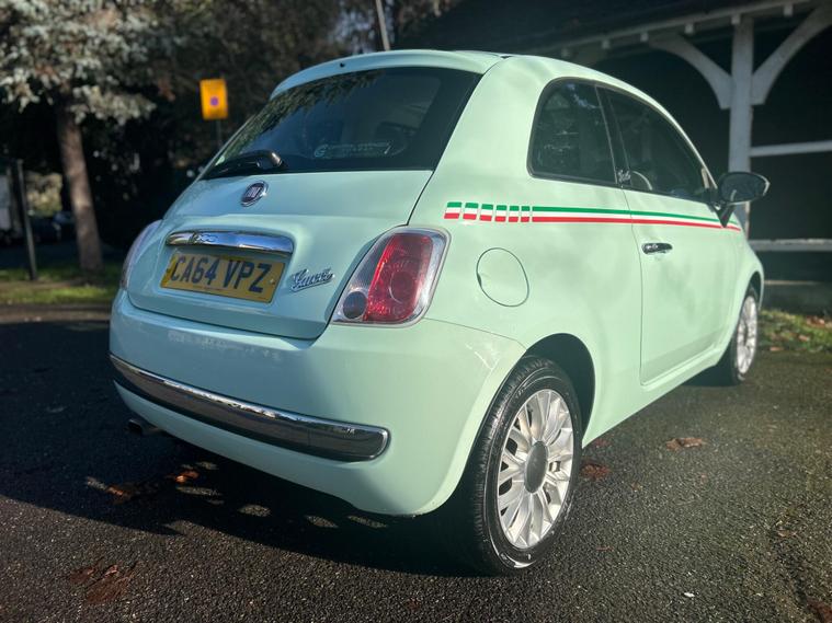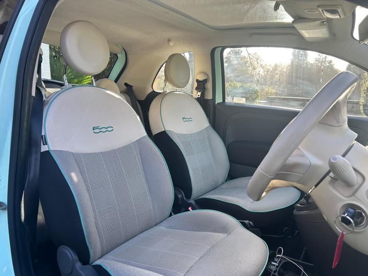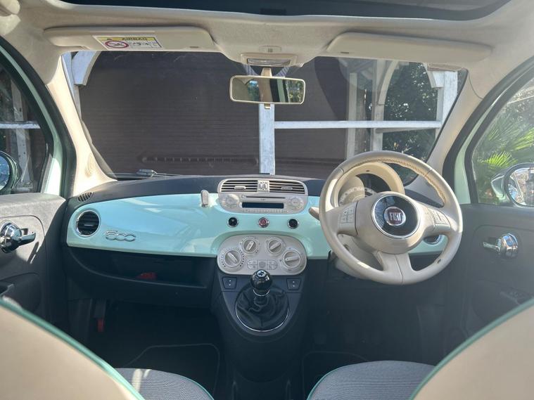 TWO PRIVATE OWNERS FROM NEW✅EXCELLENT SPECIFICATION✅HALF LEATHER✅PANORAMIC SUN ROOF✅AIR CONDITIONING✅REPRESENTING GOOD VALUE. This popular Lounge Edition has only had two private owners from new. It was recently taken in part exchange by ourselves against a new car. The last owner has had it for approximately the last eight years. It looks stunning in this colour. Fiat “Smooth Mint” Contrast 500 logo embossed Half Leather Lounge upholstery. “Panoramic heat reflecting glass sun roof with retractable full length sun visor. Retro 500 alloy wheels. Colour coded exterior styling pack. Heat reflecting tinted glass. Air conditioning. Multi function leather steering wheel. City steer function. Multi function entertainment system. Electric windows. Electric door mirrors. Smooth mint colour coded interior styling etc etc. supplied with full mot, recent service. A very smart vehicle that represents good value. Complete with all spare keys, fitted over carpets and has not been smoked in ..