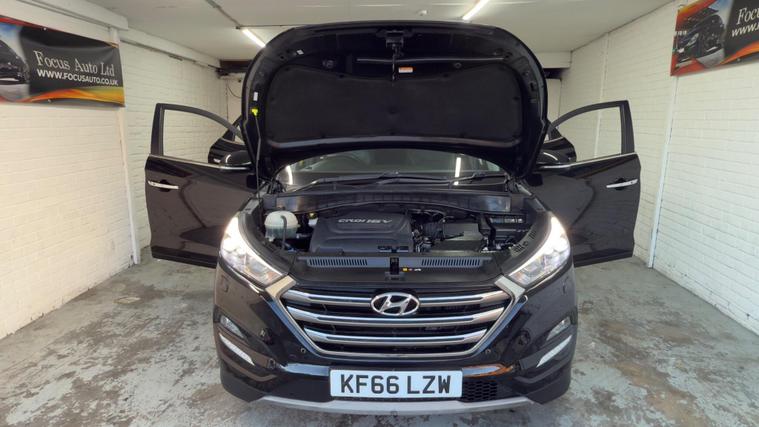 Boasting exceptionally low mileage for its age, this 2016 Hyundai TUCSON CRDi Premium SE is a standout example. With only one owner since new and a clear vehicle history check, this four wheel drive model is powered by a 2.0L Diesel Euro 6 engine. It comes with a 3 month warranty for your peace of mind, and its MOT is valid until October 2026. The last service was completed at 36700 miles, reflecting its very low overall mileage of just 36700 miles. Notable features include a panoramic sunroof with electric tilt and slide, automatic headlights with a dusk sensor, keyless entry with an engine start-stop button, heated front seats, and a blind spot monitor.This TUCSON Premium SE offers a compelling package, highlighted by its large boot space, providing ample room for all your needs. Its low insurance group rating also indicates that running costs are kept to a minimum, making it a more economical choice compared to similar vehicles. The combination of its comprehensive features, excellent provenance, and practical benefits makes this Hyundai TUCSON a truly attractive proposition.All vehicles are inspected by trained technicians and are history checked. Test drives and part-exchange are available, and you can choose, buy and drive away the same day. Three months mechanical parts and labour warranty included. Third party extended Warranty (up to 36 months) options are available. Free 12 months AA roadside breakdown Assistance. 5 days drive away Insurance available from £44.99 (term & conditions apply) Our cars are HPI cleared. Competitive finance options are available. NO Admin Fee- NO ADMIN fee on finance application made with us. Admin fee may apply on finance application made from third party( please ask for details). All Major cards are accepted. Look our website dealer's website for further information..