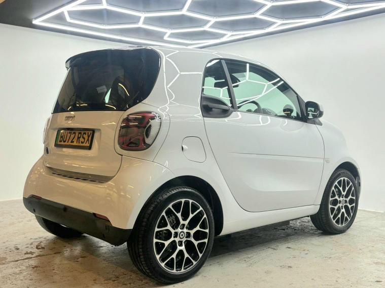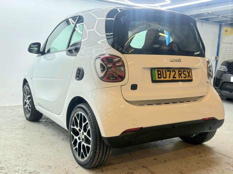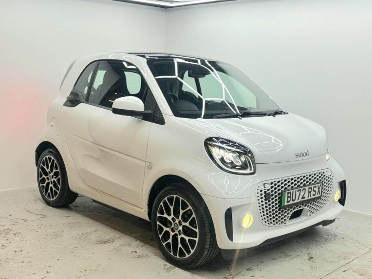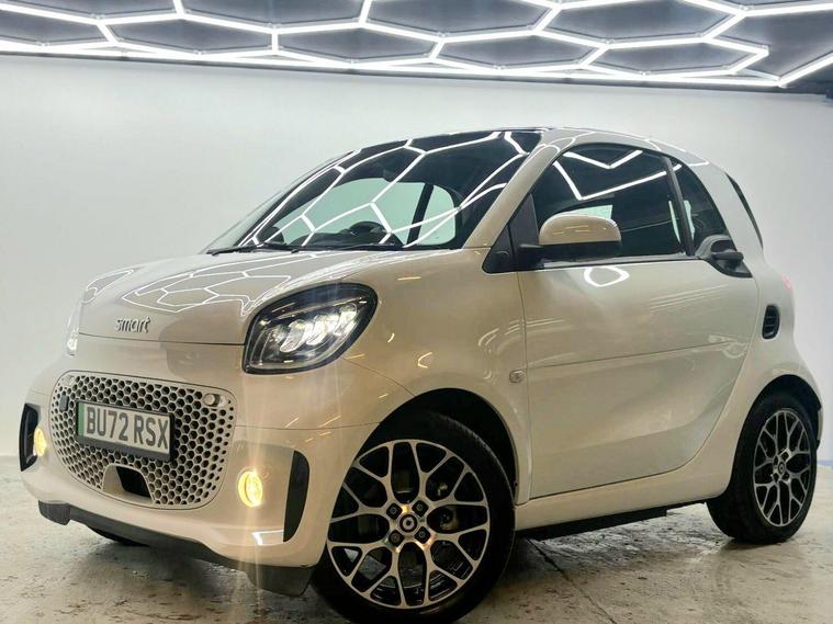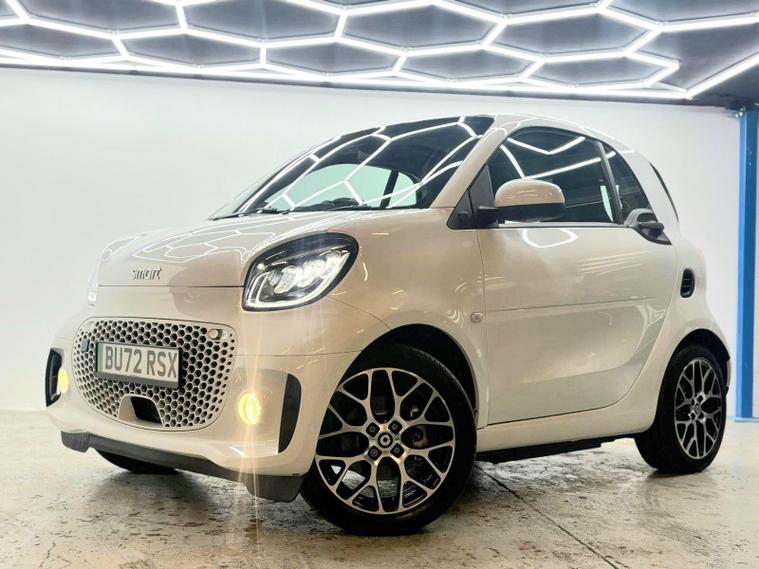 This 2022 Smart Fortwo Prime Exclusive Electric offers an exceptional blend of compact urban agility and advanced electric technology. With a 18 kWh battery providing a maximum range of 75 miles when new, this vehicle is perfectly suited for city driving and short commutes. Charging is convenient, taking just 3 hours and 46 minutes at home with a 7kW charger. The Prime Exclusive trim ensures a premium experience, enhanced by the striking White Solid Paint Tridion Safety Cell and a Panoramic Roof with Sun Protection, offering an open and airy cabin.Further elevating this Smart Fortwo are its notable features designed for comfort and safety. The Winter Package, including Climate Control, heated seats, and a heated steering wheel, ensures a pleasant journey in colder weather. Full LED Headlamps provide excellent visibility, while the Rear Parking Aid, complete with an acoustic warning and reversing camera, makes manoeuvring effortless. These features collectively demonstrate how this Smart Fortwo Prime Exclusive Electric is thoughtfully equipped to provide a superior driving experience compared to other vehicles in its class..