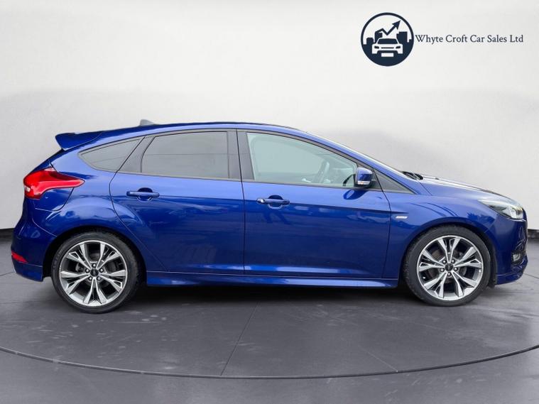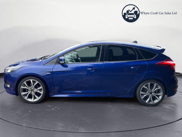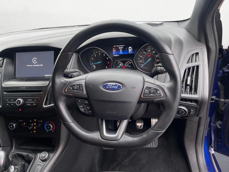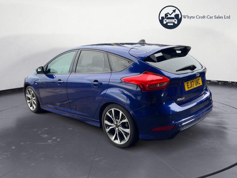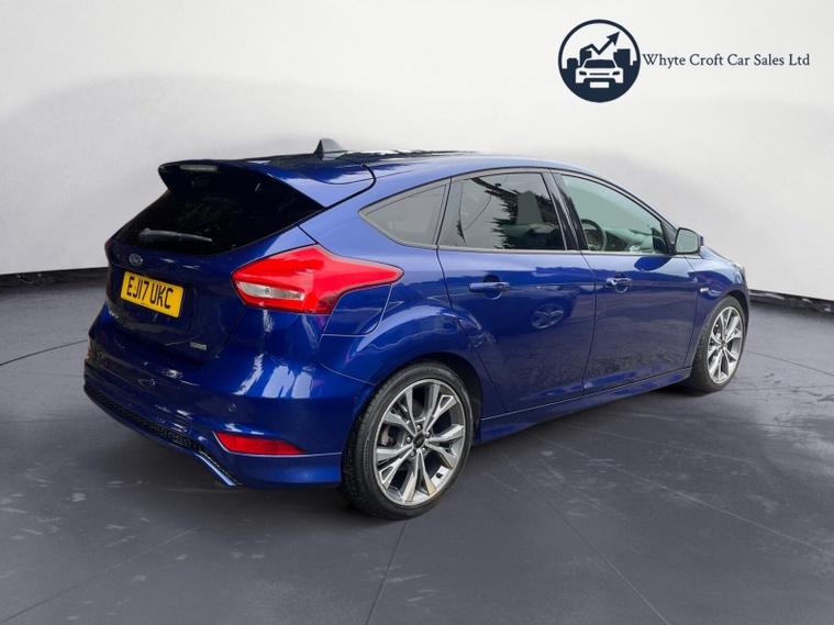 This 2017 Ford Focus ST Line is a well maintained example having had only two owners from new and boasts a clear vehicle history check. It features a responsive 1.0 litre petrol engine and meets Euro 6 emissions standards. Inside, you'll find the convenient 8 inch TFT touchscreen with Ford SYNC2, which includes Bluetooth connectivity for seamless phone integration.This Focus ST Line offers impressive efficiency, achieving an excellent 60 miles per gallon, which is better than many similar vehicles. Its low CO2 emissions also contribute to its economical running costs. Furthermore, the generous boot space ensures you have plenty of room for shopping, luggage, or any other essentials..
