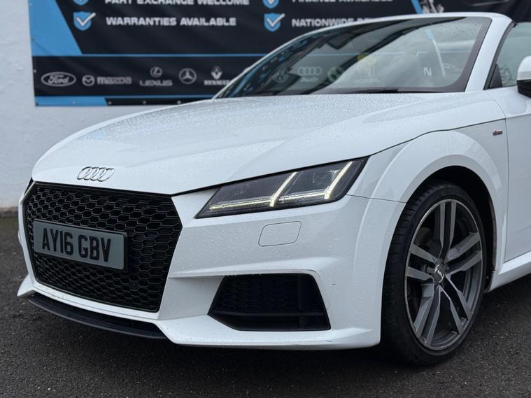 This 2016 Audi TT TDI S line offers an exceptional blend of performance and efficiency, making it a standout choice. Powered by a 2.0 litre diesel engine, this Euro 6 compliant model delivers an impressive 0-60mph time of just 7.0 seconds. The S line trim ensures a premium experience, complemented by features such as LED headlights with automatic activation, air conditioning for your comfort, and Bluetooth connectivity for seamless audio streaming and mobile phone integration.This Audi TT is designed to impress with its remarkable fuel economy, achieving a highlight of 59 miles per gallon, which is significantly better than many other vehicles in its class. Furthermore, its low CO2 emissions contribute to a more environmentally conscious drive. You'll also appreciate the generous boot space, offering practicality for your everyday needs and journeys..