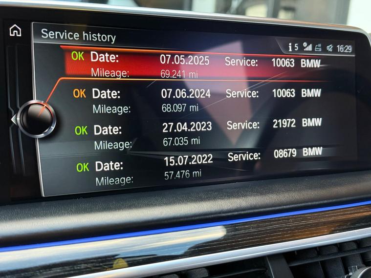 This 2017 BMW 740Li M Sport offers a refined driving experience with its powerful 3.0L petrol engine. As a Euro 6 compliant vehicle, it meets modern emissions standards. The M Sport trim enhances its sporty appeal, while features like Park Distance Control for both front and rear, along with a Reversing Assist Camera, make manoeuvring effortless. Comfort Access with a Smart Opener provides keyless entry, and the automatic four zone climate control ensures a pleasant environment for all occupants.The performance of this 7 Series is truly impressive, accelerating from 0 to 62mph in just 5.6 seconds. This swift acceleration demonstrates its capability and responsiveness, setting it apart from many other vehicles in its class. The inclusion of LED headlights further enhances visibility and the car's sophisticated presence on the road..