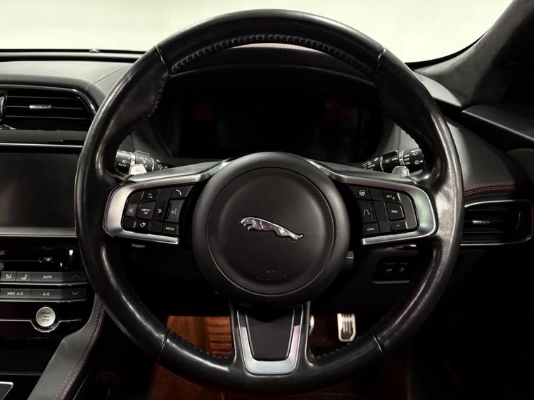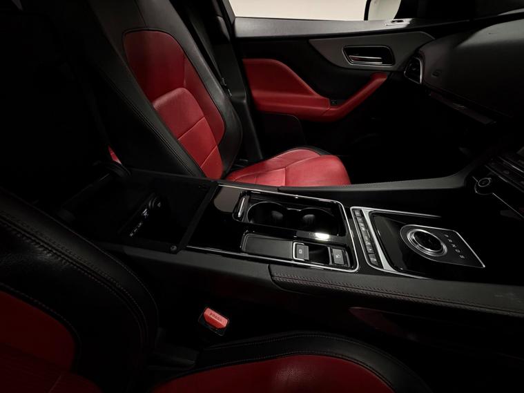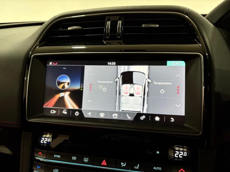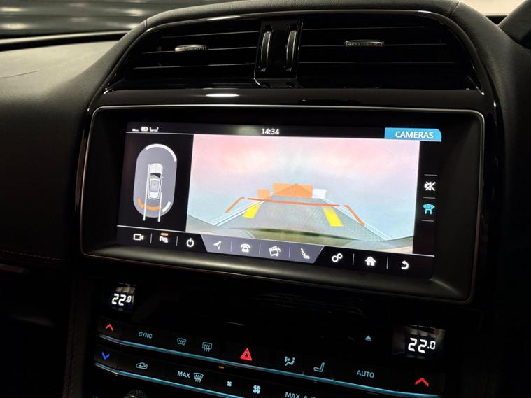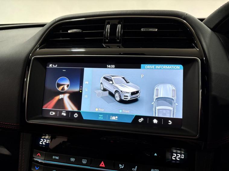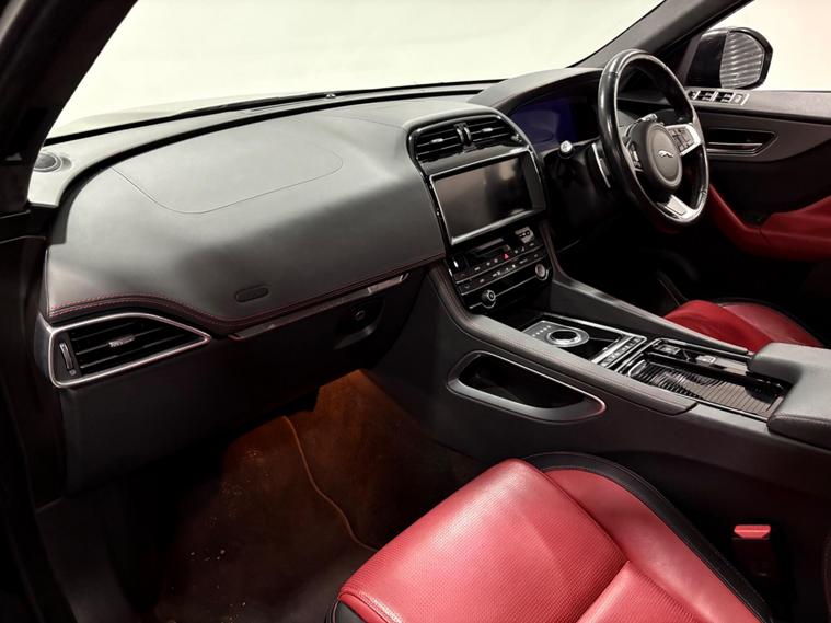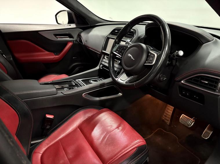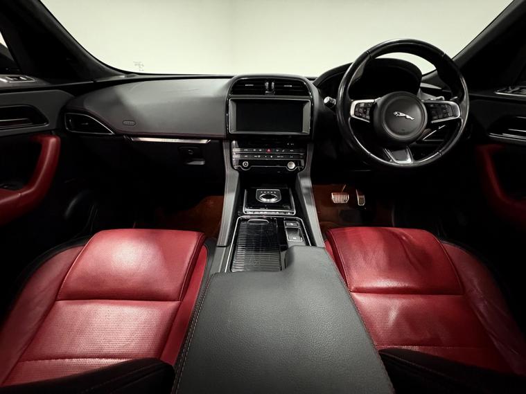 This rare petrol Jaguar F PACE has been serviced twice through a Jaguar main dealer and will have another service as part of our internal preparation, finished in metallic Santorini black with black and red leather interior, only 2 owners from new and supplied with 2 keys. The Chequered Flag trim level adds distinctive touches, including a panoramic glass roof, front and rear parking sensors with reversing camera, dual tailpipes with a 75mm finish and a subtle 25t AWD badge, Xenon headlights with a distinctive LED signature.Experience impressive acceleration with the F PACE capable of reaching 0-60mph in just 6.6 seconds, a performance that sets it apart from many similar vehicles. This capability is complemented by a large boot space, providing ample room for luggage or shopping, making it a practical choice for families and adventurers alike. The inclusion of a heated steering wheel further enhances comfort, especially during colder months. With a towing weight of 2400 kg, this Jaguar F PACE is also well suited for those who need to tow trailers or caravans.SpecificationsThe data displayed above details the usual specification of the most recent model of this vehicle. It is not the exact data for the actual vehicle being offered for sale and data for older models may vary slightly. We recommend you check the vehicle details with your sales advisor before you buy..