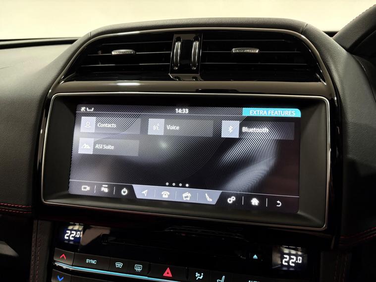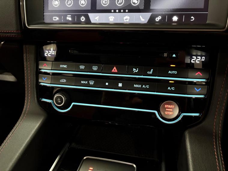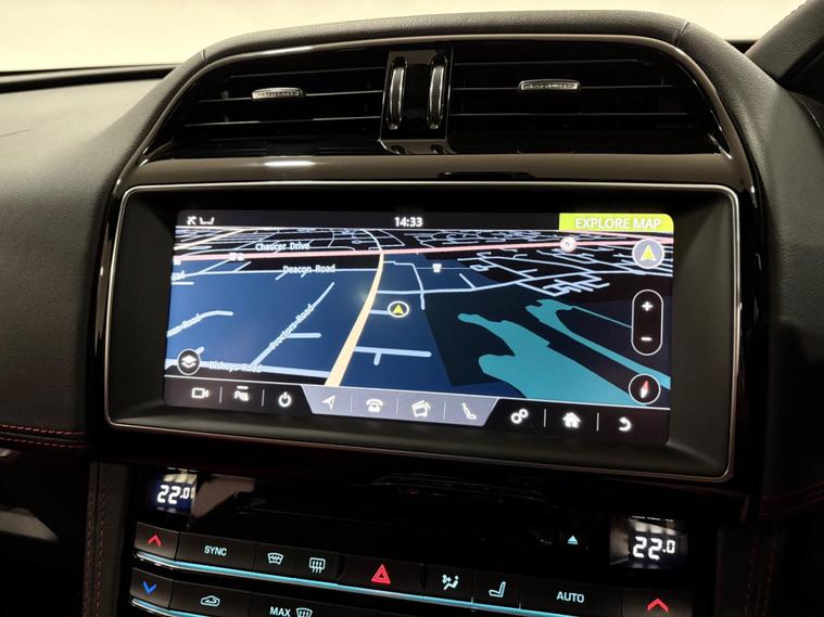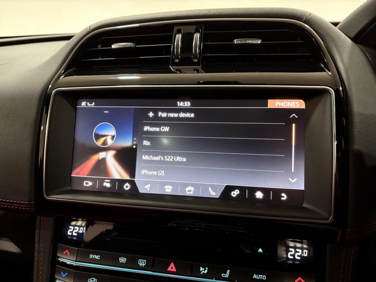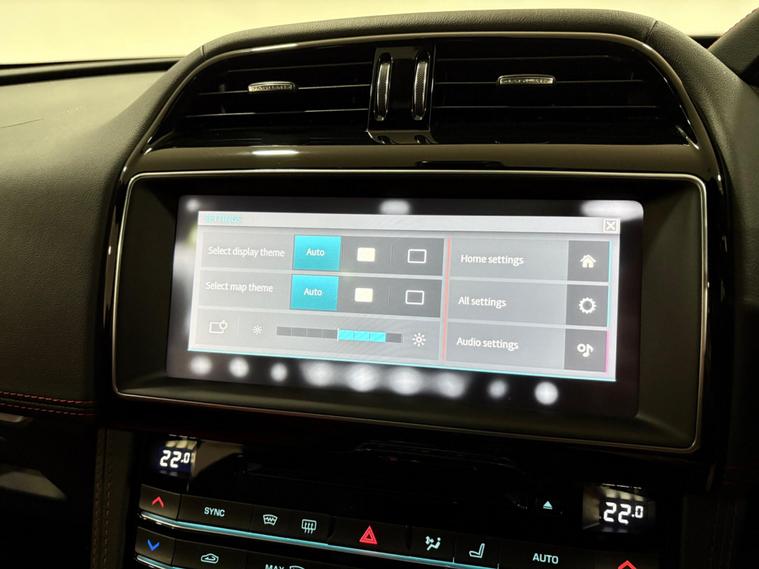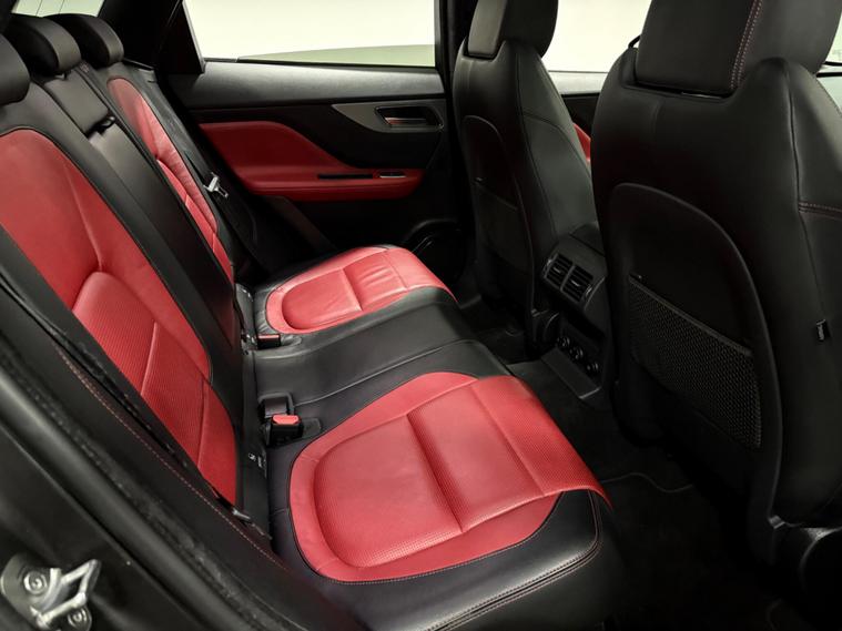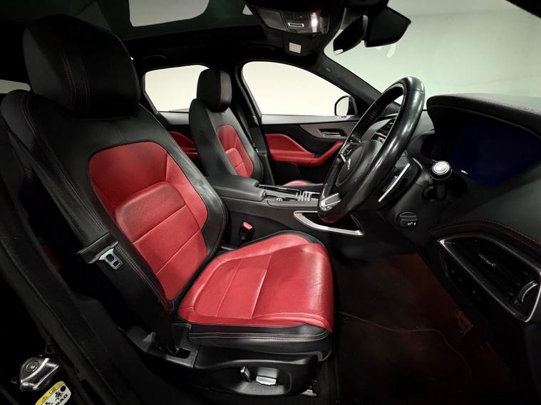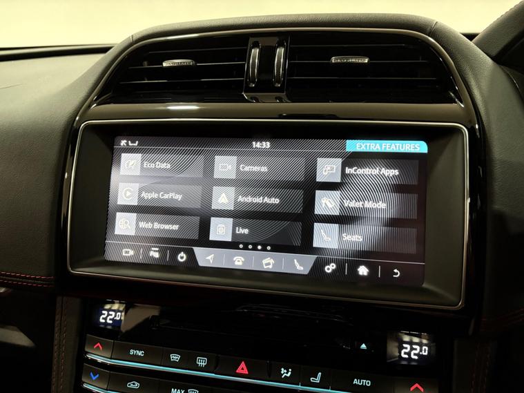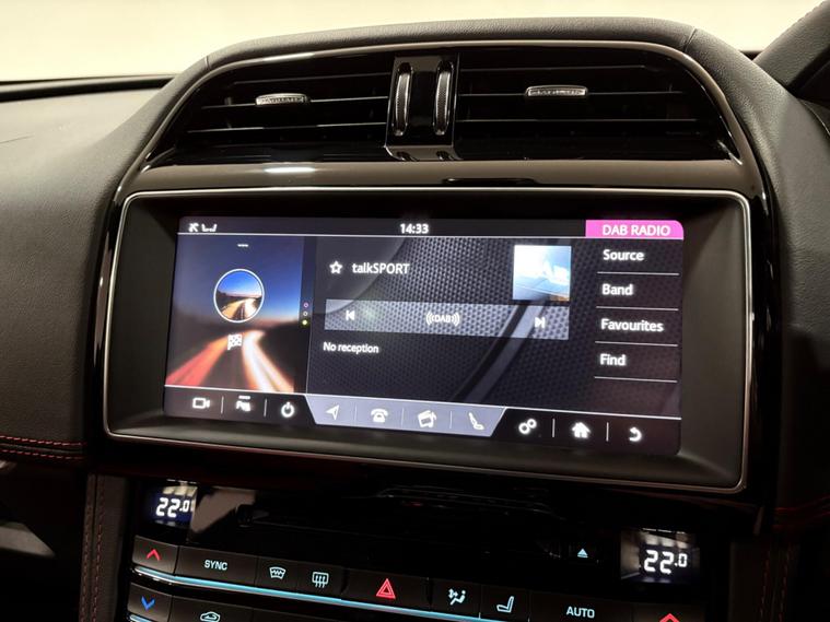 This rare petrol Jaguar F PACE has been serviced twice through a Jaguar main dealer and will have another service as part of our internal preparation, finished in metallic Santorini black with black and red leather interior, only 2 owners from new and supplied with 2 keys. The Chequered Flag trim level adds distinctive touches, including a panoramic glass roof, front and rear parking sensors with reversing camera, dual tailpipes with a 75mm finish and a subtle 25t AWD badge, Xenon headlights with a distinctive LED signature.Experience impressive acceleration with the F PACE capable of reaching 0-60mph in just 6.6 seconds, a performance that sets it apart from many similar vehicles. This capability is complemented by a large boot space, providing ample room for luggage or shopping, making it a practical choice for families and adventurers alike. The inclusion of a heated steering wheel further enhances comfort, especially during colder months. With a towing weight of 2400 kg, this Jaguar F PACE is also well suited for those who need to tow trailers or caravans.SpecificationsThe data displayed above details the usual specification of the most recent model of this vehicle. It is not the exact data for the actual vehicle being offered for sale and data for older models may vary slightly. We recommend you check the vehicle details with your sales advisor before you buy..