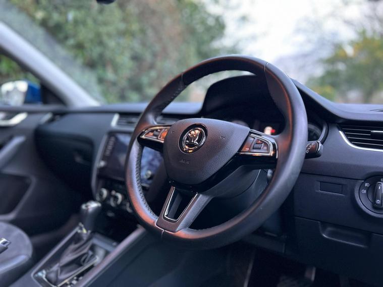 STUNNING EXAMPLE✅GREAT VALUE✅IMPECCABLE SKODA SERVICE RECORD✅EXCELLENT SPECIFICATION ✅LEATHER/SUEDE UPHOLSTERY ✅NAVIGATION✅APPLE/ANDROID AUTO✅VOICE COMMAND✅MEDIA INTERFACE ✅CRUISE ETC✅This truly is a most impressive example that has been impeccably well maintained by the former (interesting) owner, regardless of cost !!!, Beautifully presented in desirable Skoda “Racing Blue Metallic. Contrast Dark Slate Leather/Alcantara Suede upholstery in unmarked condition. “Aerodynamic exterior styling. Heat reflecting tinted glass. 17” Alloy wheels. Full size steel spare wheel option (brand new) “Skoda Park Pilot. “Touch Media System with large colour screen. Satellite Navigation pro. Voice command. Multimedia interface. CD. DVD. Apple/Android auto. Smart Link. Mirror link. DAB etc (outstanding system) Personalised vehicle set up. Automatic climate control. Cruise control with collision prevention system. Leather/Carbon multi function steering wheel etc etc. Skoda demo plus one (interesting) owner from new. 63, 000. Miles with an impeccable service record as follows. Serviced/maintained @ 6105 miles. 14642 miles. 25676 miles. 27012 miles. 29258 miles. 31678 miles. 42183 miles. 56043 miles. And has also just had a new windscreen fitted as the old had a mot advisory for a chip. Complete with all spare keys, fitted over carpets and has never been smoked in. This truly is a stunning example that represents genuine value..