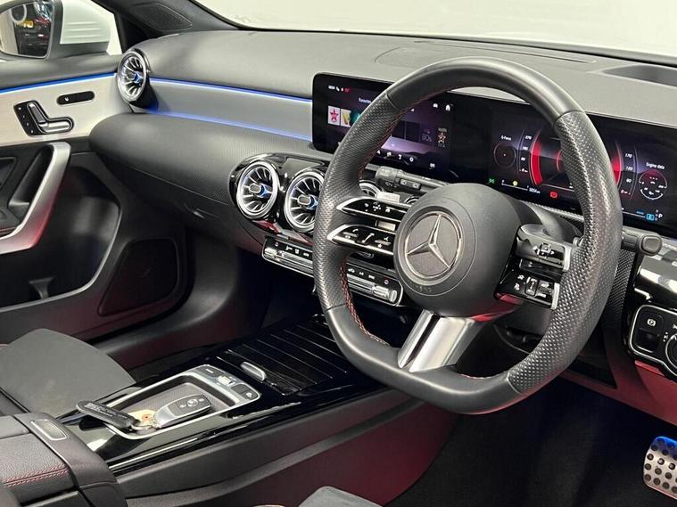 This 2023 Mercedes Benz A Class A200h AMG Line (Premium Plus) boasts exceptionally low mileage for its age, having covered just 8635 miles. This Euro 6 compliant model features a 1.3 litre petrol hybrid engine, offering an efficient and responsive drive. Inside, you'll find a host of premium features designed for convenience and connectivity, including wireless charging for your devices, seamless smartphone integration with Android Auto and Apple CarPlay, and an advanced Head Up Display to keep essential information in your line of sight.The AMG Line trim enhances the sporty appeal, while the Parking Package, complete with a 360 degree camera and front and rear parking sensors, makes manoeuvring effortless. This vehicle also offers a generous boot space, perfect for everyday practicality. Its acceleration is noteworthy, reaching 0-62mph in just 8.2 seconds, demonstrating a performance that sets it apart from many similar vehicles..