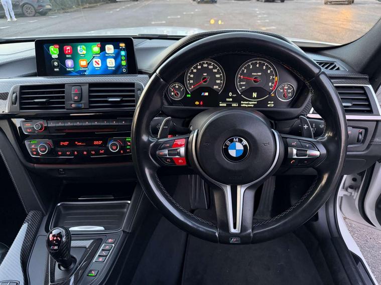 Finished in Mineral White, this 2017 BMW M3 Competition is a properly specified, properly maintained example of one of BMW M’s most respected modern performance saloons. Sitting on 20-inch CS alloy wheels and enhanced by a carbon exterior bodykit, it has a sharp, aggressive stance that looks purposeful without being overdone.Power comes from BMW M’s twin-turbocharged engine, delivering explosive performance with precise control and everyday usability. It’s a car that feels just as confident on long motorway journeys as it does when driven hard, offering the balance and engagement the M3 Competition is known for.This example has been clearly looked after. It benefits from a full service history and has just been serviced, comes with a fresh MOT, and has had brand-new front and rear brake discs and pads fitted — meaning the next owner can enjoy the car with real peace of mind.Inside, the specification is strong and focused on both comfort and driving enjoyment. The cabin features extended full black Merino leather, electrically adjustable seats with memory, and carbon fibre interior trim that reinforces the car’s motorsport DNA. The head-up display projects key driving information directly into the driver’s line of sight, keeping attention firmly on the road ahead.Technology and convenience are well covered, with Apple CarPlay installed, a reversing camera for easy manoeuvring, Comfort Access with smart opener, and sun protection glazing. The Harman Kardon surround sound system delivers powerful, crystal-clear audio, completing a cabin that feels premium, modern, and driver-centric.This is a well-sorted, highly specified M3 Competition that combines performance, presence, and practicality in one complete package — ready to be driven and enjoyed immediately..