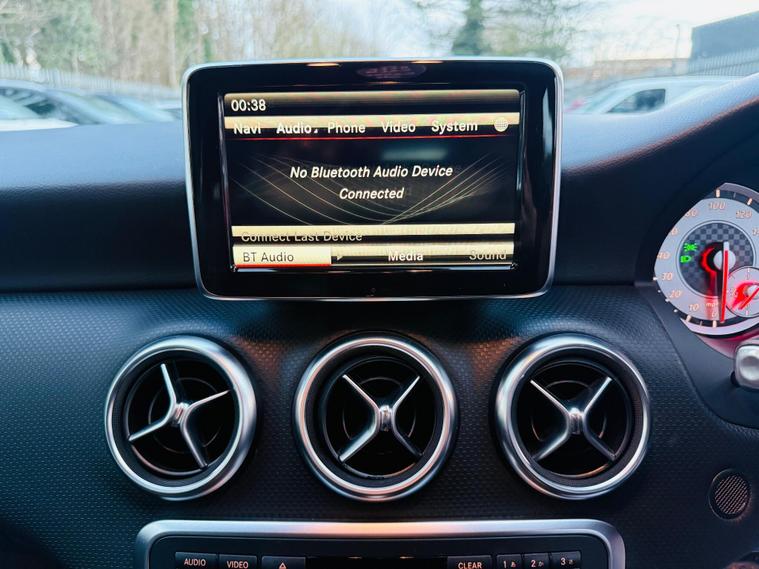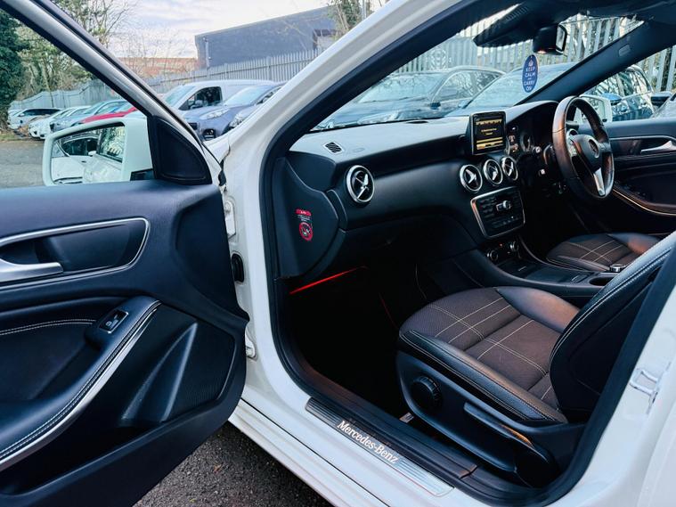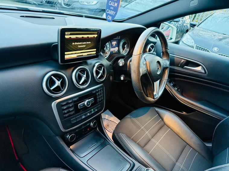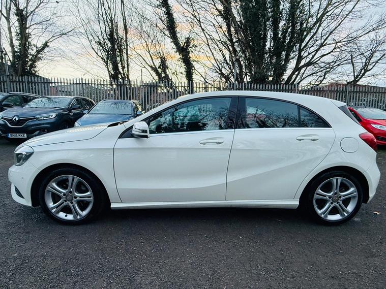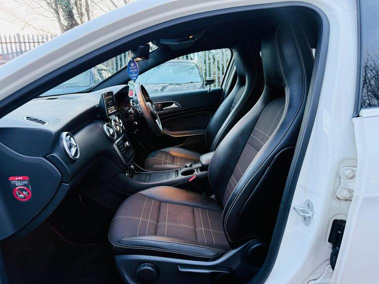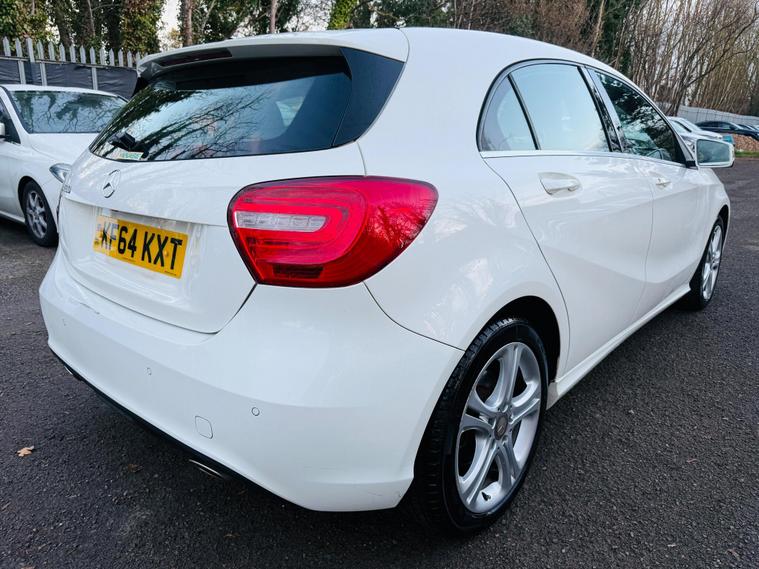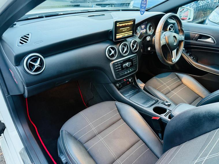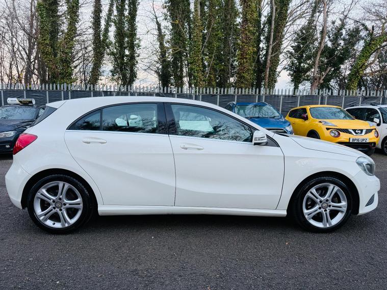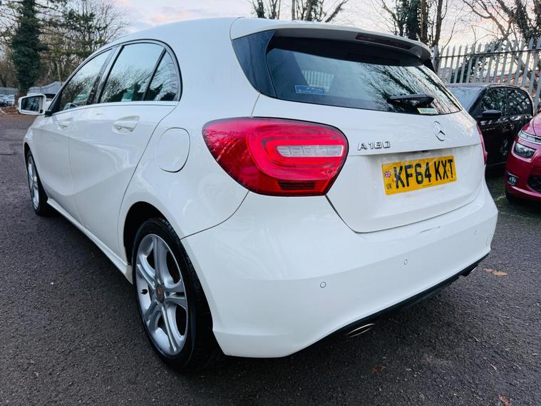 WHITE, FINANCE AVAILABLE, NAVIGATION SYSTEM, REVERSE CAMERA, HALF LEATHER SEATS, SPARE KEY, APPLE CAR PLAY, ONLY ONE OWNER, CRUISE CONTROL, ULEZ COMPLIANTWARRANTED AND VARIFIABLE LOW MILEAGE WITH IMPORTED DOCUMENTS.This 2014 Mercedes Benz A Class A180 Sport boasts exceptionally low mileage for its age, having covered just 49165 miles. This Euro 6 compliant 1.6L petrol model comes with an MOT valid until November 2026, offering peace of mind for the coming years. Inside, you'll find a Bluetooth interface for hands free telephone calls and air conditioning, ensuring comfort and convenience on every journey.The A180 Sport stands out with its impressive acceleration, reaching 0-62mph in a brisk 9.1 seconds, demonstrating its lively performance. Its low insurance group rating indicates that running costs are likely to be more affordable compared to similar vehicles. Furthermore, the generous boot space provides ample room for luggage or shopping, making it a practical choice for everyday use and longer trips..
