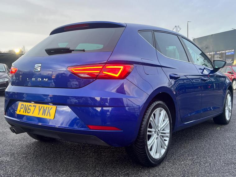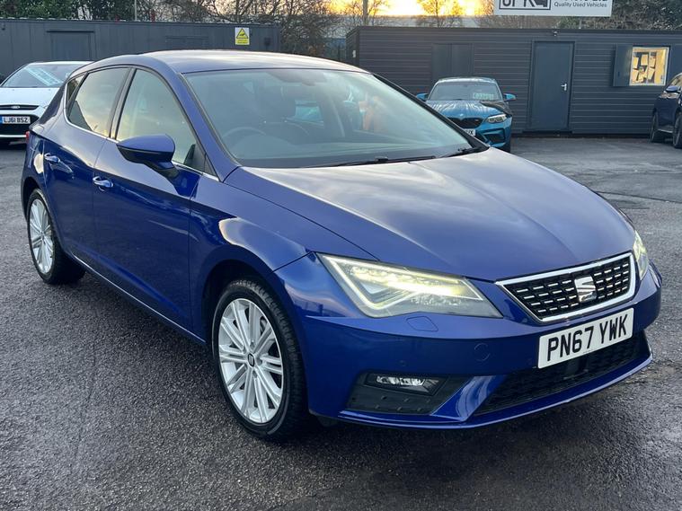 Boasting a full service history with its last service completed on 9th May 2024 at 47, 840 miles, this 2017 SEAT Leon TSI XCELLENCE Technology presents a compelling proposition. Powered by a 1.4 litre Euro 6 compliant petrol engine, this model has covered a modest 58, 000 miles, which is notably low for its age. It comes equipped with a 12 month MOT for your peace of mind and features desirable additions such as 17 inch Dynamic Machined Alloy Wheels, a Navigation System High, the Driving Assistance Pack 1, and the SEAT Sound System. The Connectivity Hub, including Kessy Keyless Entry and Go, further enhances its modern appeal.This SEAT Leon excels with a remarkable fuel economy of 54 miles per gallon, indicating its efficiency compared to similar vehicles. Its acceleration from 0 to 62 miles per hour in just 9.1 seconds offers a responsive driving experience. Furthermore, you will appreciate the generous boot space, providing ample room for luggage or shopping, making it a practical choice for everyday use and longer journeys alike..