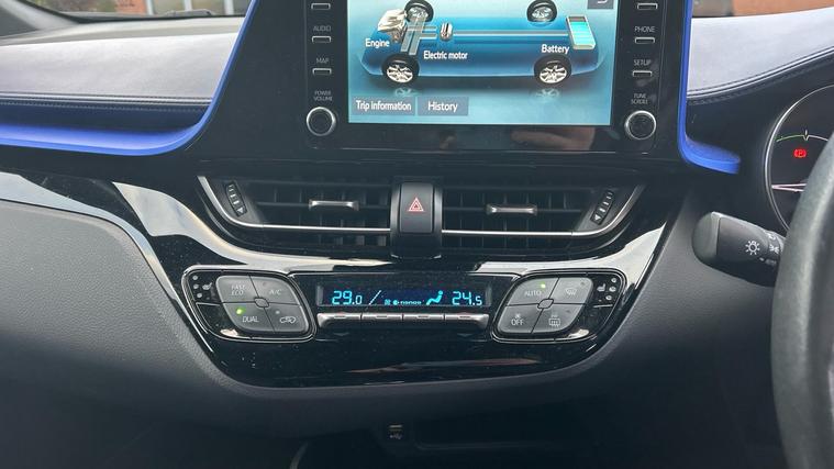 This 2020 Toyota C-HR VVT-h Dynamic is a Toyota manufacturer approved vehicle, offering peace of mind with 12 months warranty and a full service history. With only 38, 470 miles on the clock, it represents low mileage for its age. This Euro 6 compliant model features a 1.8L Petrol Hybrid engine and comes equipped with a reversing camera for parking assistance, dual-zone automatic air conditioning for personalised comfort, and Bluetooth connectivity for seamless audio and calls. Enjoy the convenience of smart entry and push-button start, alongside Toyota Safety Sense which includes blind spot assistance.The highlights of this C-HR Dynamic demonstrate its excellent value and efficiency. Achieving an impressive 59 mpg, it offers superior fuel economy compared to many other vehicles in its class. Furthermore, its low insurance group and low CO2 emissions mean that running costs are kept to a minimum, making it a sensible and economical choice for everyday driving..