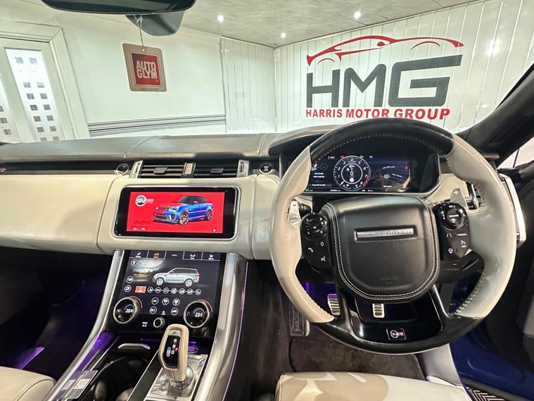 Boasting exceptionally low mileage for its age, this 2021 Land Rover Range Rover Sport P575 V8 SVR presents a remarkable ownership proposition. This Euro 6 compliant model features a potent 5.0 litre petrol engine paired with a four wheel drive system, ensuring capability in all conditions. With a substantial towing weight of 3000 kg, it is ready for adventure. The vehicle benefits from a full service history and an MOT valid until November 2026, offering peace of mind alongside a six month warranty.The SVR trim level is enhanced by an SVR Carbon Fibre Exterior Pack, prominently featuring an exposed carbon fibre bonnet. Inside, occupants will appreciate the four zone climate control and the luxurious Meridian Signature Sound System. The Climate Comfort Pack further elevates the experience with an opening panoramic sunroof. This Range Rover Sport offers impressive performance, accelerating from 0 to 60mph in just 4.3 seconds, a testament to its powerful V8 engine and indicating a superior driving dynamic compared to many other vehicles. Its large boot space also provides excellent practicality for everyday use and longer journeys.FREE DELIVERY WITHIN 40 MILES AT ADVERTISED PRICE!! Walk around video available via whats app. Same day delivery available!! All vehicles come with an Engine service! 2021 71 Reg Land Rover Range Rover Sport 5.0 P575 V8 SVR Auto 4WD Euro 6 (s/s) 5 door. Drives Flawlessly without any issues. Gearbox and engine are spot on. Hpi Clear. Mot November 2026. 28, 298 Miles Warranted with Service history. 2 keys, Double Panoramic Tilt and Slide roof, Heated seats, Reverse Camera, Sat Nav, Alloys, Air con and much more. Read specification list below. Ring for more information. Part Exchange at TRADE price. Drive away insurance, Nationwide Delivery, Finance and warranties available. Late viewings also available!.