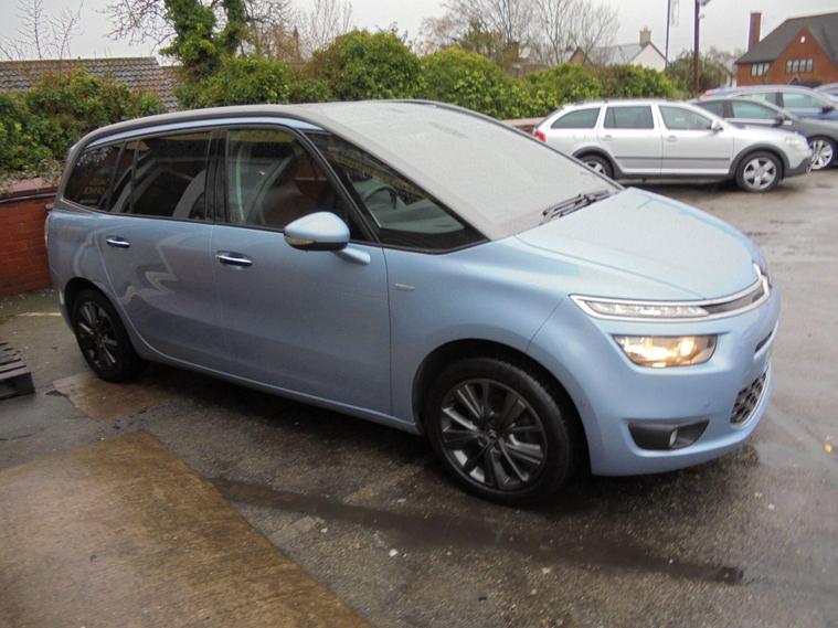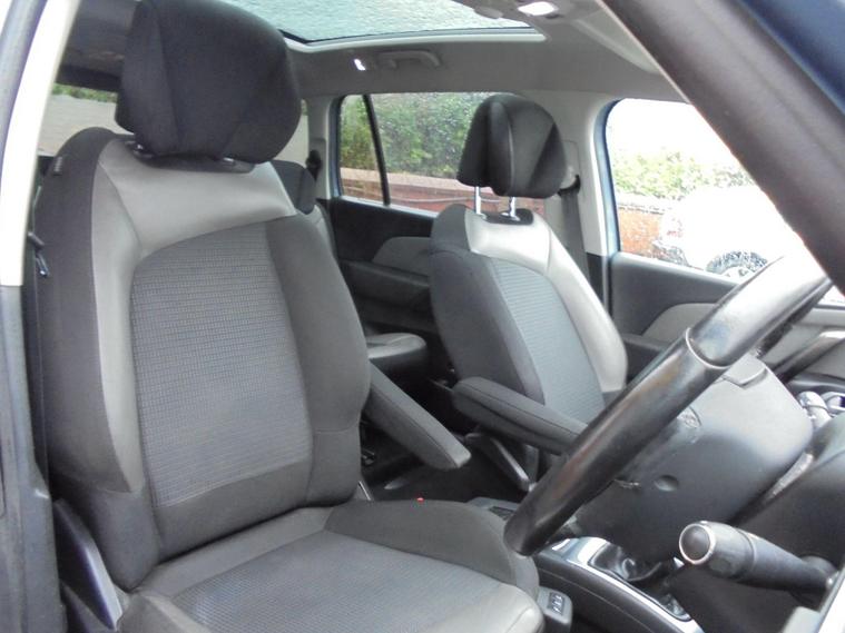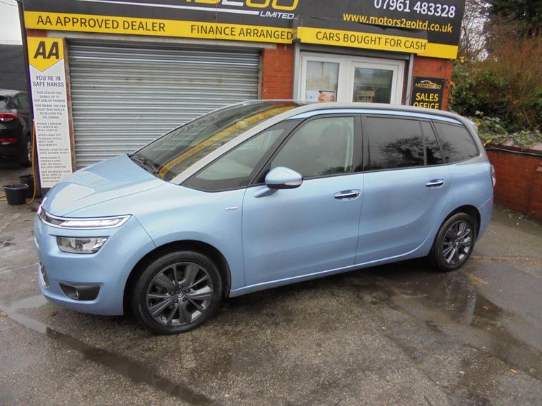 CITROEN GRAND C4 PICASSO 1.6 BLUEHDI EXCLUSIVE+ EURO 6.METALLIC BLUE WITH CONTRASTING GREY HALF LEATHER INTERIOR.GREAT VALUE 7 SEAT MPV WITH NEW CLUTCH JUST FITTED AND FULL dealer's website WITH GREAT SPEC SAT NAV, PANORAMIC ROOF, BLUETOOTH CONNECTIVITY, FRONT AND REAR PARKING SENSORS, REAR CAMERA, USB+AUX AND 17 INCH ALLOY WHEELS.VERY ECONOMICAL 7 SEATER £20 A YEAR ROAD TAX AND 65 MPG.MOT UNTIL DECEMBER 2026 AND FRESH SERVICE 12 MONTHS FREE AA BREAKDOWN COVER AND 18 MONTHS WARRANTY INCLUDED IN PRICE.FINANCE AVAILABLE P/X WELCOME..