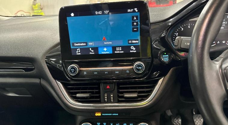 This 2018 Ford Fiesta Titanium is presented with a clear vehicle history check, offering you peace of mind. This popular hatchback features a 1.0L petrol engine and meets Euro 6 emissions standards. Inside, you'll find the convenient Ford Navigation System with Ford SYNC 3, which seamlessly integrates with both Apple CarPlay and Android Auto. The NCAP Pack includes automatic headlights, and the Electronic Automatic Temperature Control air conditioning ensures a comfortable cabin environment.The Ford Fiesta Titanium excels with impressive fuel economy, achieving a remarkable 60 mpg, and boasts low CO2 emissions, making it an economical choice. Its performance is also noteworthy, with an acceleration of 0-62mph in just 10.0 seconds. These highlights demonstrate how this Fiesta offers a superior driving experience compared to other vehicles in its class, combining efficiency with responsive performance..
