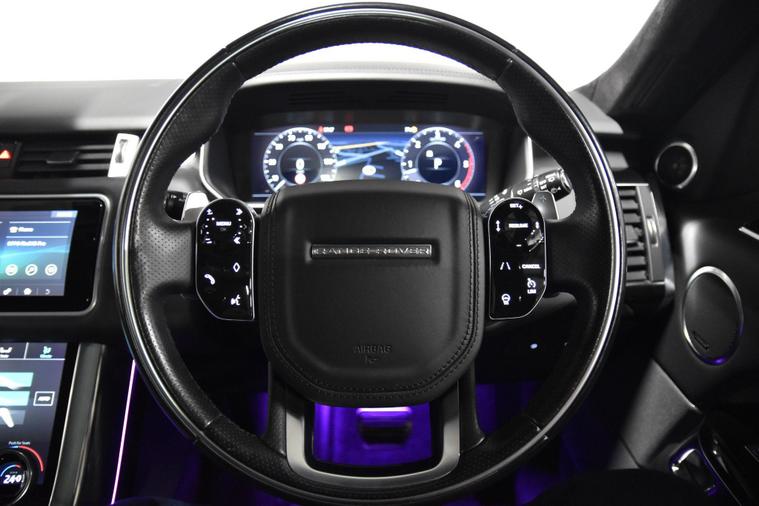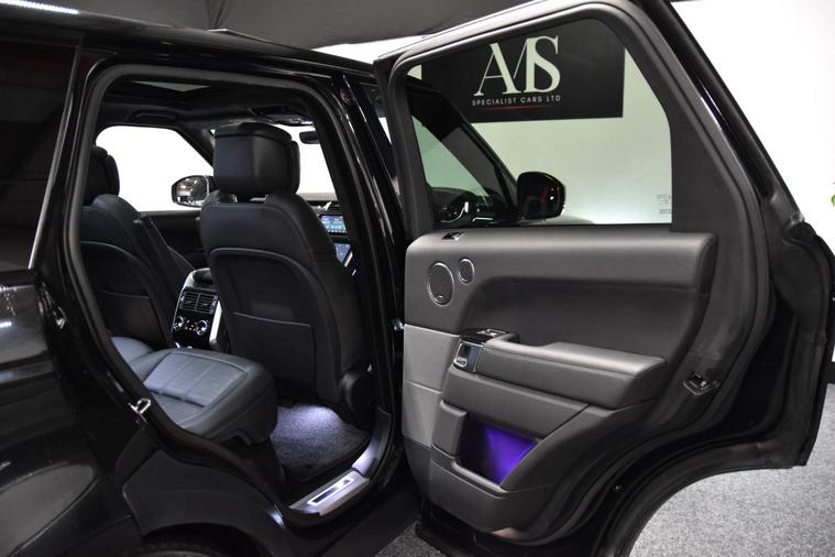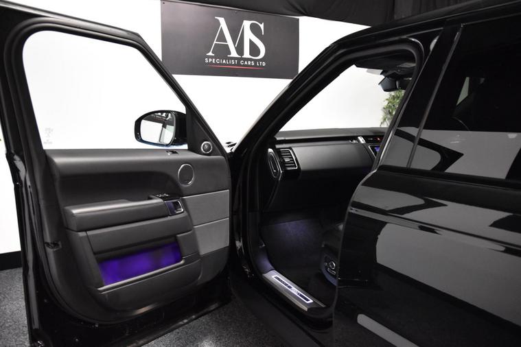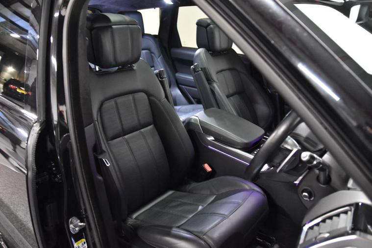 We are pleased to offer this stunning Range Rover Sport Autobiography finished in metallic Santorini black with Ebony leather interior. This car has covered just 48, 000 miles from new complete with 5 Land Rover main dealer services and 1 independent service. The spec of this car includes 22 inch wheels, sliding panoramic roof, heated and cooled front seats, heated outer rear seats, heated steering wheel, configurable ambient lighting, privacy glass, exterior black pack, Meridian audio, apple car play, blue tooth phone connection, adaptive cruise control, adaptive headlights, auto lights and wipers, reverse camera, parking sensors and much more..