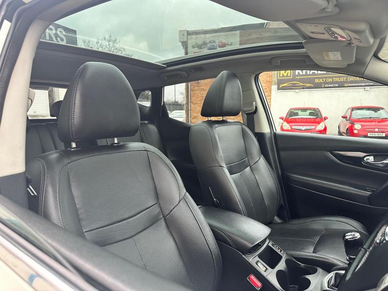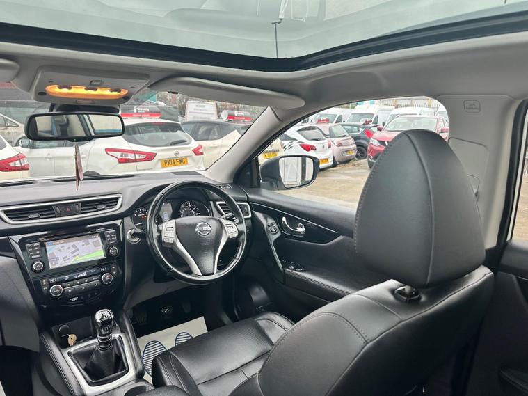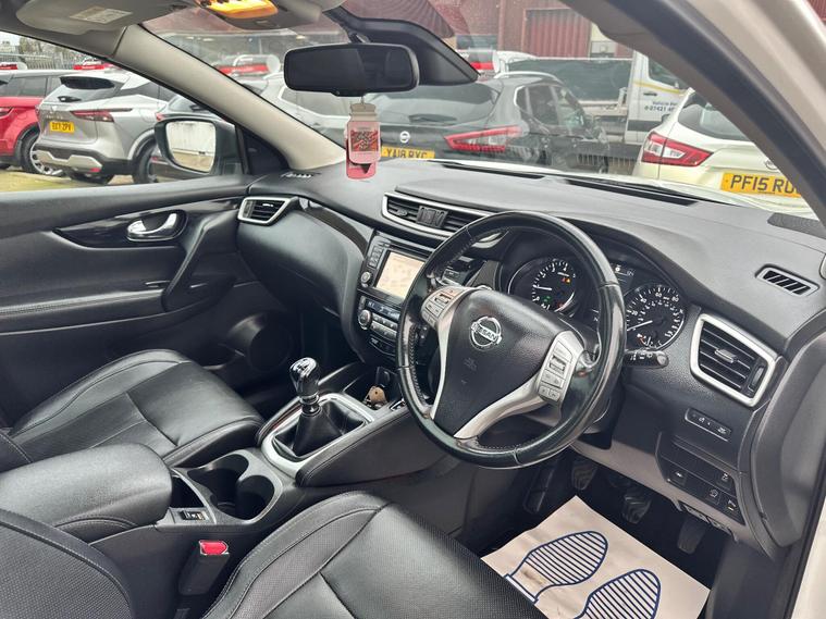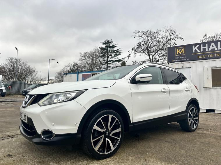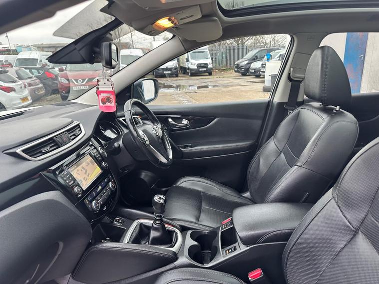PRESENTING THIS NICELY CLEAN NISSAN QASHQAI FOR SALE. CLEAN BODY INTERIOR AND EXTERIOR. TEKNA FULL PACKAGE-FULL LEATHER- HEATED FRONT SEATS- ELECTRIC DRIVER SEAT-PANORAMIC GLASS ROOF- 360 DEGREE AROUND VIEW CAMERA AND SENSORS- TOUCH SCREEN-SAT.NAV-BLUETOOTH ..and more in specs.MECHANICALLY PEREFCT NO ISSUES. MAJOR SERVICE JUST DONE, NEW-TIMING CHAIN-OIL-OIL FILTER-AIR FILTER-FRONT BRAKE DISCS. NEW REAR TYRES. HPI CLEAR. 1 KEY. NO SERVICE HISTORY ONLY LATEST INVOICE AVAILABLE. WARRANTED ENGINE AND GEARBOX FOR 3 MONTH THROUGH OUR COMPANY. 6 MONTH WARRANTY AVAILABLE. 12 MONTH FREE AA BREAKDOWN COVER. ROAD TAX AND V5C NEED TO BE DONE BY POSTOFFICE. FOR MORE DETAILS PLEASE CALL US.This 2015 Nissan Qashqai DIG-T Tekna is a standout choice, offering a blend of advanced technology and practical efficiency. Powered by a 1.2 litre petrol engine, this Tekna trim model comes equipped with Bi-LED headlights that automatically adjust to lighting conditions, enhancing visibility. For added safety and convenience, it features Blind Spot Warning, a 360 degree Around View Monitor for effortless parking, and a rear view camera.This Qashqai DIG-T Tekna is designed to be economical to run, boasting an impressive fuel economy of 50 miles per gallon. Its low CO2 emissions and placement in a low insurance group further contribute to its cost effectiveness, making it a sensible option compared to similar vehicles..