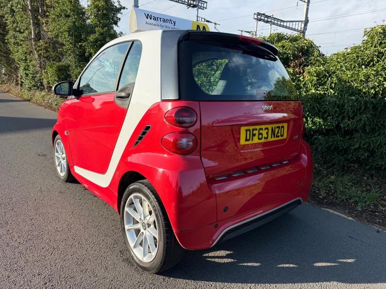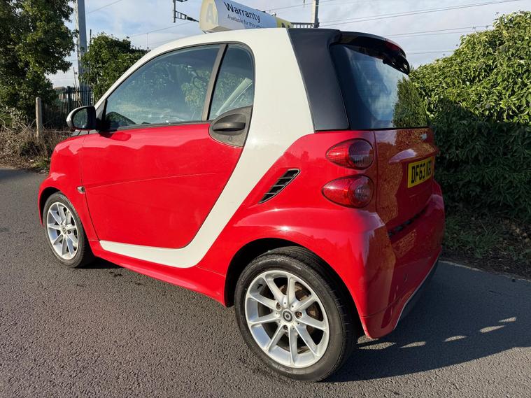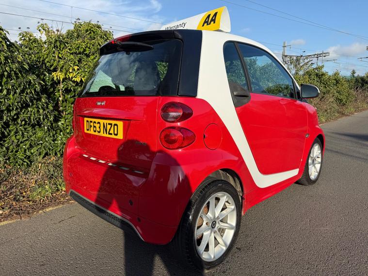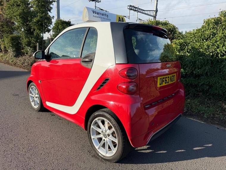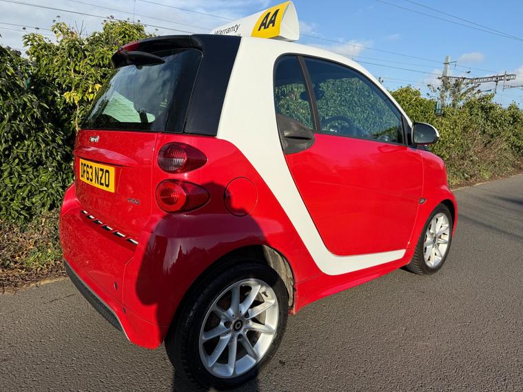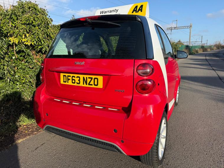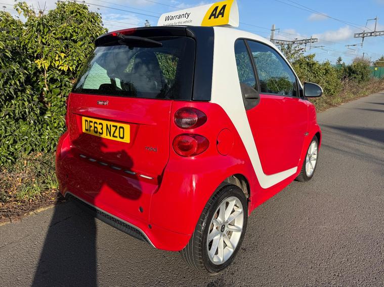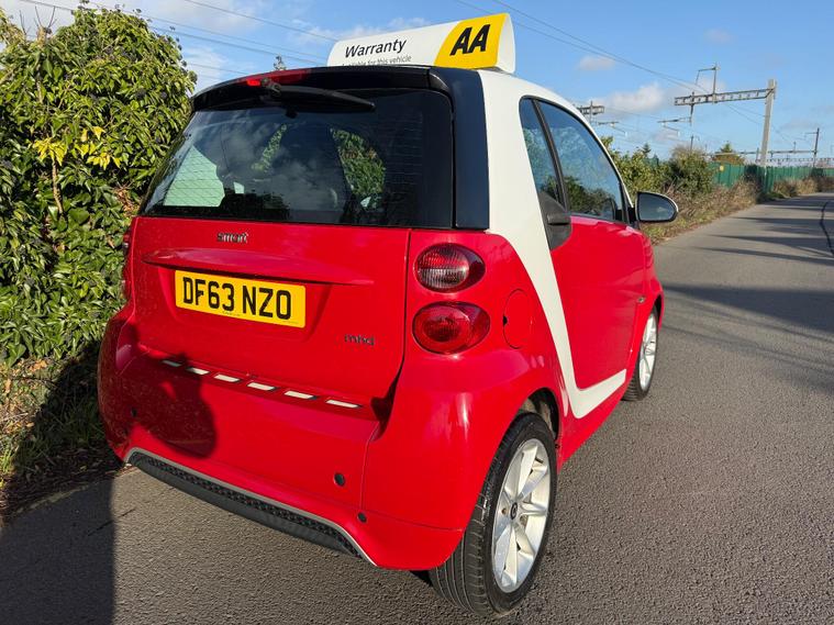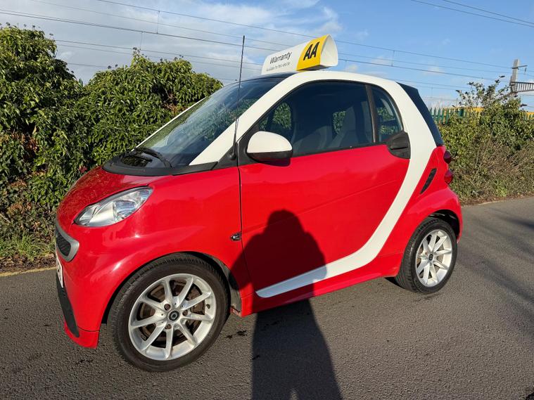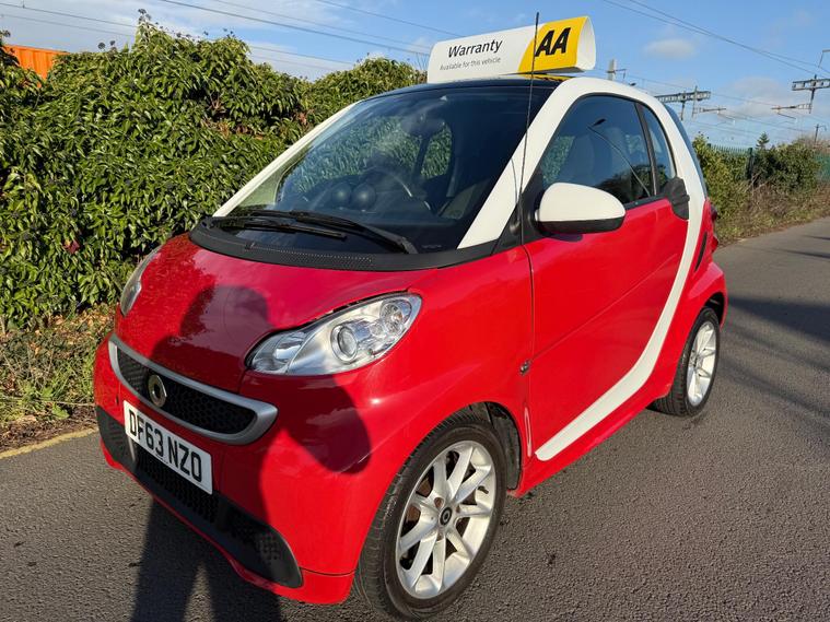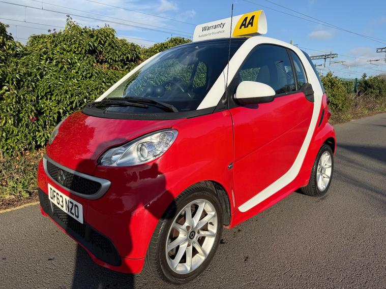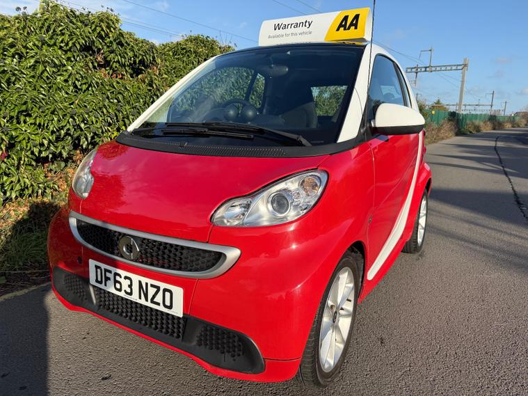 Discover this exceptional 2014 Smart Fortwo MHD Passion, boasting remarkably low mileage for its age at just 39, 000 miles. This compact city car is powered by an efficient 1.0L petrol engine and comes in the desirable Passion trim. Enjoy the open air with its panoramic roof, which includes an opening sunroof, and stay connected on the go with the integrated Bluetooth hands free system. For your comfort, it features air conditioning with automatic temperature control, ensuring a pleasant cabin environment no matter the weather.This Smart Fortwo stands out with its impressive fuel economy, achieving an excellent 66 miles per gallon, making it a very economical choice for your daily journeys. Its low CO2 emissions further highlight its efficiency and environmental consideration, setting it apart from many other vehicles in its class. This combination of low running costs, compact size, and thoughtful features makes this Smart Fortwo MHD Passion a compelling option for navigating urban environments with ease and style..