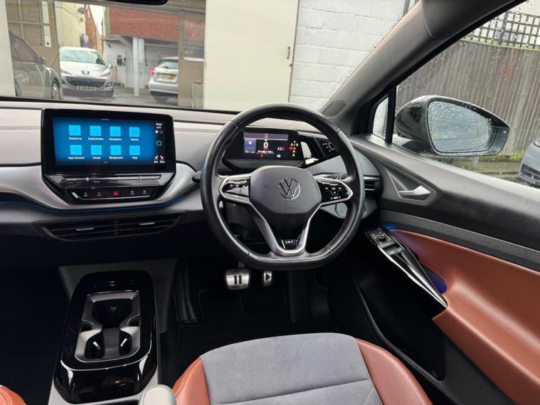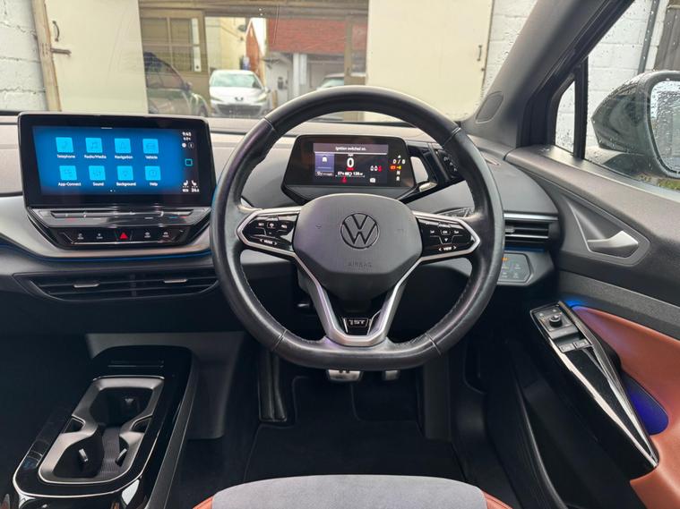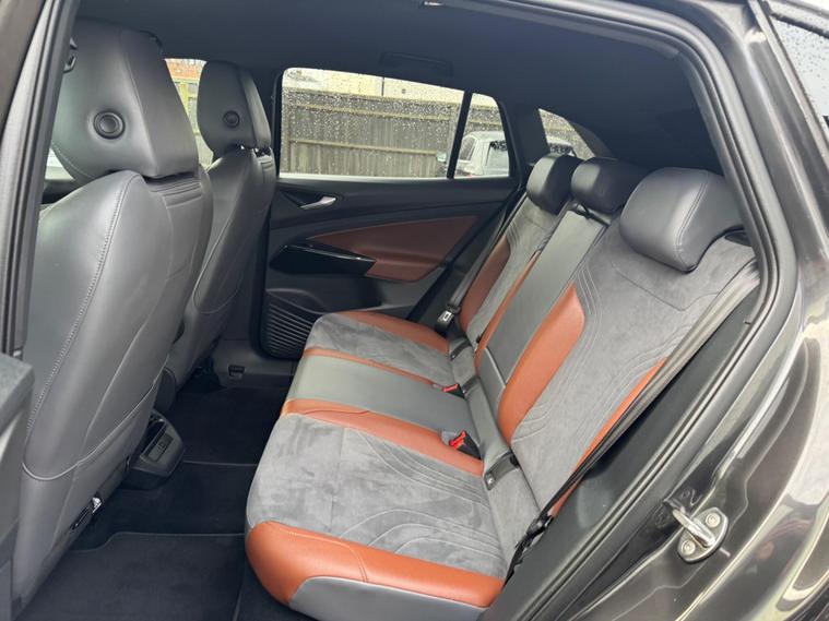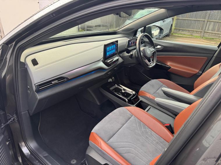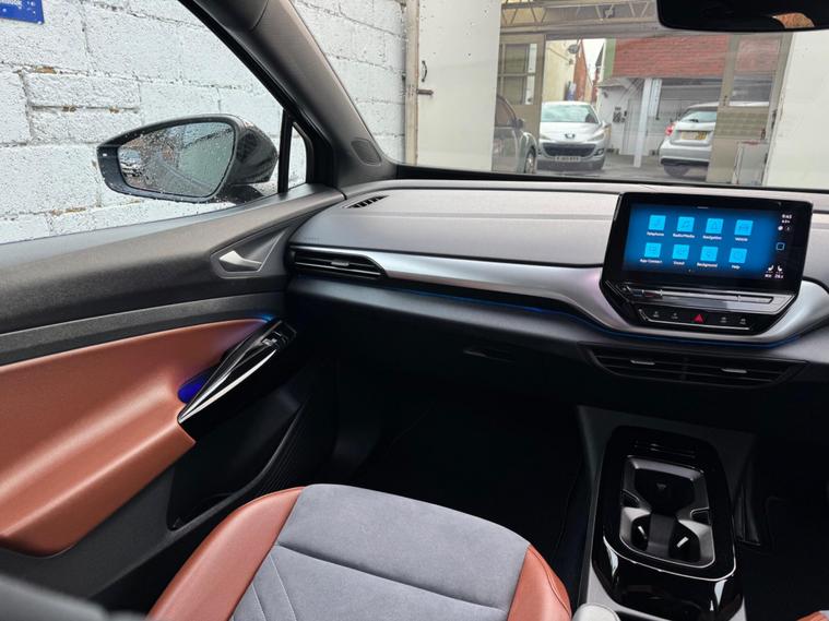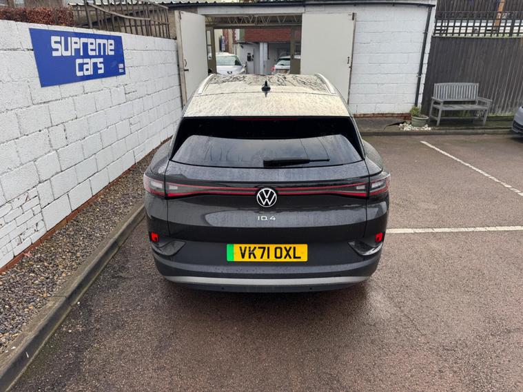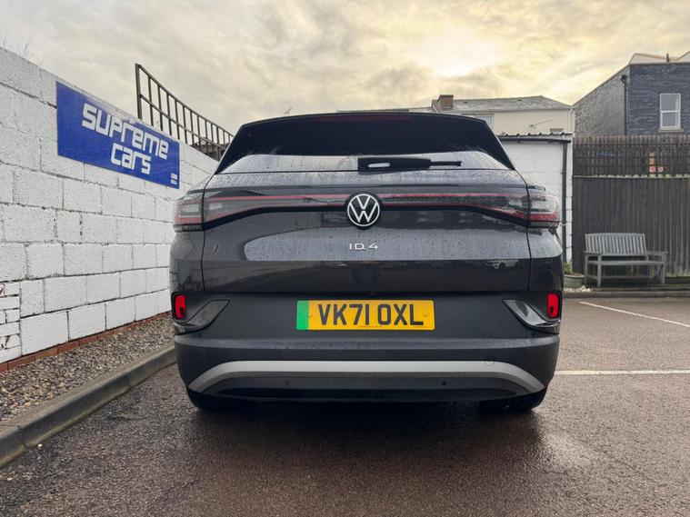 This 2021 Volkswagen ID.4 Pro Performance 1ST Edition boasts a clear vehicle history and has had only one owner from new. As a fully electric vehicle, it features an 82 kWh battery offering a maximum range of 310 miles when new. This 1ST Edition model comes equipped with striking LED headlights and tail lights, a heated multifunction leather steering wheel, and smart adaptive cruise control with a rain sensor. Inside, you'll find the Air Care Climatronic 2 zone air conditioning system and heated front seats for enhanced comfort.The impressive 310 mile range highlights how this ID.4 can take you further on a single charge compared to many other electric vehicles. Charging is convenient, with a full charge at home taking approximately 12 hours and 40 minutes using a 7kW charger, while rapid public charging can take you from empty to 80% in just 40 minutes. This model also offers generous boot space, making it a practical choice for families and everyday use..