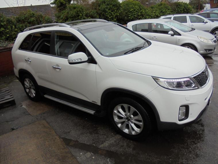 KIA SORENTO 2.2 CRDI KX-3 AUTOMATIC AWD EURO 5.BEST VALUE 2015 AUTOMATIC KX-3 IN UK dealer's website IN BRILLIANT WHITE WITH CONTRASTING BLACK LEATHER INTERIOR AND MASSIVE SPEC, COMES WITH SEVEN SEATS, SAT NAV, PANORAMIC ROOF, FRONT AND REAR PARKING SENSORS, FRONT AND REAR CAMERA, BLUETOOTH CONNECTIVITY, CRUISE CONTROL, AIRCON, USB+AUX, SIDE STEPS AND 18 INCH ALLOY WHEELS WITH TWO KEYS.FULL SERVICE HISTORY WITH 7 KIA SERVICES AND 3 INDEPENDENT.MOT UNTIL DECEMBER 2026 AND FRESH SERVICE.GREAT VALUE AUTOMATIC 4X4.12 MONTHS FREE AA BREAKDOWN COVER AND 18 MONTHS WARRANTY INCLUDED IN PRICE.FINANCE AVAILABLE P/X WELCOME..