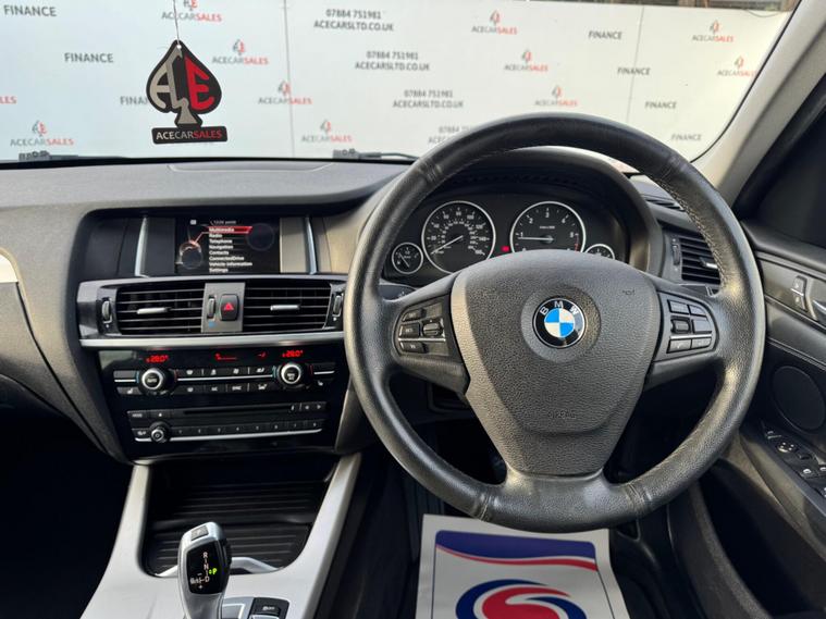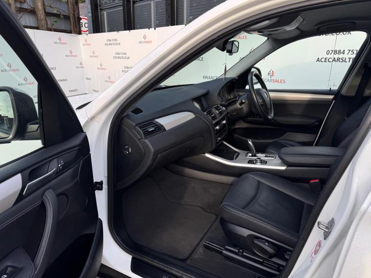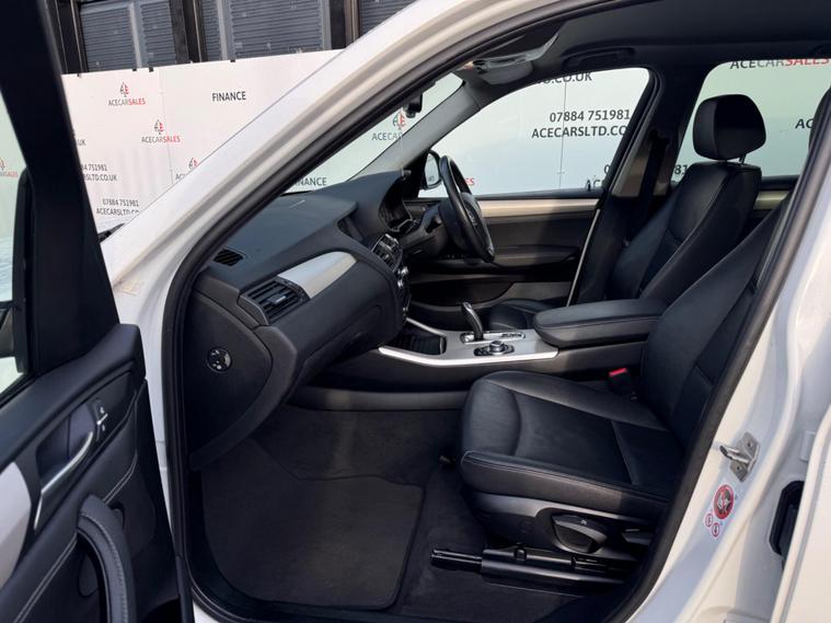 FINANCE & PCP AVAILABLE, COMPLEMENTARY WARRANTY INCLUDED, GOOD CONDITION, WE TAKE PART EXCHANGE! BMW X3 2.0 20d SE Auto xDrive Euro 6 (s/s) 5dr. HPI Clear, Full Service History, 12 Months MOT, 1 Owner, 2 Keys, EURO6 ULEZ Compliant, Fuel Consumption 54.3MPG, Keyless Start, Cruise Control, Parking Sensors - Park Distance Control - Front and Rear, Start/Stop Function, Hill Start Assist, Hill Descent Control, Drive Select Modes ECOPro/Comfort/Sport, Sports Gearbox Mode With Manual Shifting, xDrive, Servotronic Steering, Electro Mechanical Parking Brake With Autohold, Automatic Stability Control, Cornering Brake Control, Dynamic Brake Control, Dynamic Stability Control, Electronic Brake-Force Distribution, Anti Lock Braking System, Brake Drying, Brake Fade Compensation, Brake Force Display, Brake Pre-Tensioning, Tyre Pressure Warning System, Headlights - Automatic Activation, Halogen Headlights, Daytime Running Lights, Front Fog Lights, . Ambient Interior Lighting, Electric Windows, Electric Mirrors, Electric Opening/Closing Tailgate, Front Heated Seats, Automatic Dual Zone Climate Control, Air Conditioning, Front And Rear Screen Demister, Colour Screen Media Interface, Navigation, Traffic Information, Sports Display, xDrive Status Display, Vehicle Status, Bluetooth, Radio, DAB, AUX, USB, Telephone Connection, Voice Control, Multifunctional Steering Wheel, Full Leather Seats In Black, Aluminium Design Interior Trims, BMW Design Door Sills, Exterior Badging, Roof Rails, Privacy Glass, 17inch Alloy Wheels.ALL VEHICLES ARE FULLY INSPECTED PRIOR TO SALE. Wish to make this purchase hassle free with ease? Feel free to enquire about our competitive Financial packages. We can assist you in securing finance for your New car with ease- regardless of your credit status/history. All of our cars are regularly price checked to be amongst the most competitive on the market! We include a COMPLEMENTARY WARRANTY on all our vehicles. We pride ourselves on offering a personalised service to suit your needs. Visit our website for more information on our vehicles - dealer's website