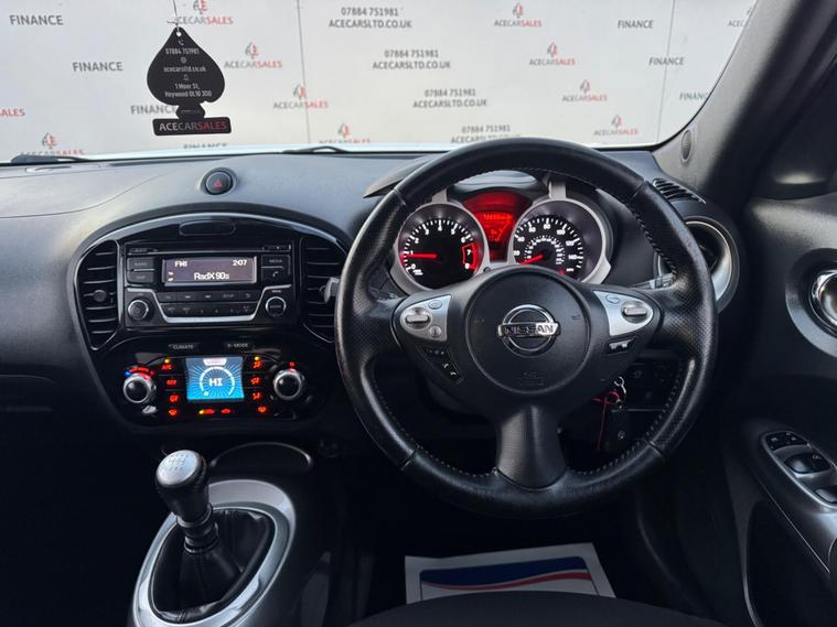 FINANCE & PCP AVAILABLE, COMPLEMENTARY WARRANTY INCLUDED, GOOD CONDITION, WE TAKE PART EXCHANGE! Nissan Juke 1.2 DIG-T Acenta Euro 5 (s/s) 5dr Euro 5 Manual 6 Speed. HPI Clear, Full Service History, Timing Chain Kit + Waterpump @73, 176Miles, 12 Months MOT Included With No Advisories, 2 Owners, 2 Keys, ULEZ Compliant, Insurance Group 11, Cruise Control, Speed Limiting Function, Auto Stop/Start Function, Parking Sensors, Nissan Dynamic Control System, Power Assisted Steering, Drive Select Modes Sport/Normal/ECO, Changing Display For Climate Control And Driving Modes, Traction Control, Electronic Stability Programme, Electronic Brakeforce Distribution, Anti Lock Brakes, Tyre Pressure Monitoring System, Halogen Headlights, LED Daytime Running Lights, Front Fog Lights, Electric Windows, Electric Mirrors, Powerfolding Mirrors, Automatic Climate Control, Air Conditioning, Front And Rear Screen Demister, Bluetooth, Radio, AUX, USB, CD, Telephone Connection, Voice Control, Multifunctional Steering Wheel, Cloth Design Seats, Exterior Badging, Privacy Glass, 17inch Alloy Wheels.ALL VEHICLES ARE FULLY INSPECTED PRIOR TO SALE. The bodywork is in excellent condition and the car drives superbly. We welcome you to view and test drive our showroom condition vehicles. Wish to make this purchase hassle free with ease? Feel free to enquire about our competitive Financial packages. We can assist you in securing finance for your New car with ease- regardless of your credit status/history. All of our cars are regularly price checked to be amongst the most competitive on the market! We include a COMPLEMENTARY WARRANTY on all our vehicles. Ace Car Sales Heywood is a well established Family run business with 30+ years of experience in the Motor trade industry! We pride ourselves on offering a personalised service to suit your needs. Visit our website for more information on our vehicles - dealer's website 'Buy With Confidence At Ace Car Sales' Be our next happy customer today! dealer's website