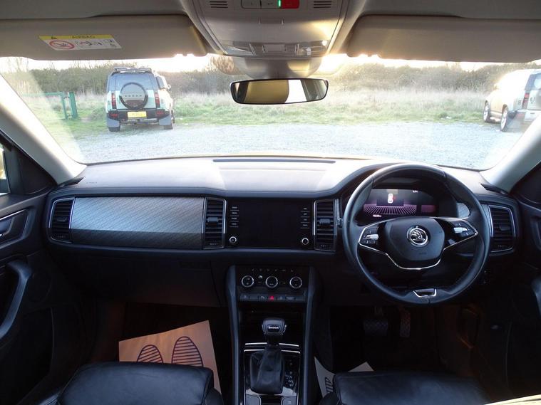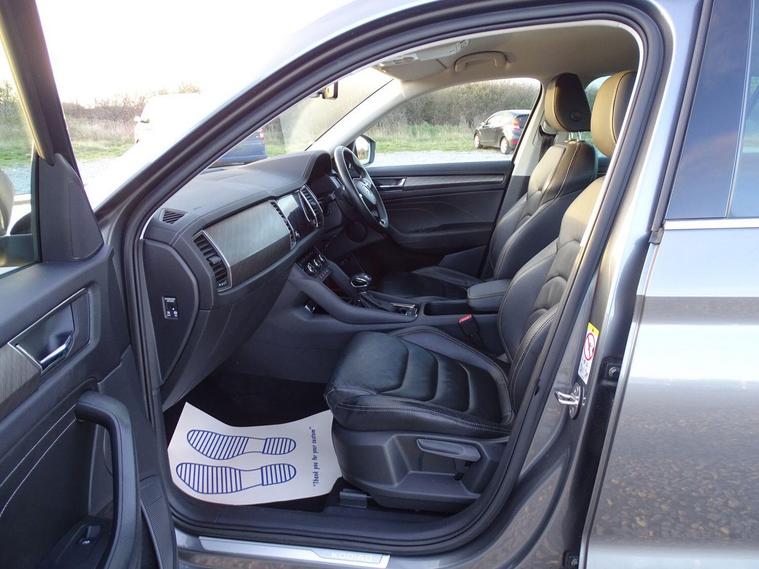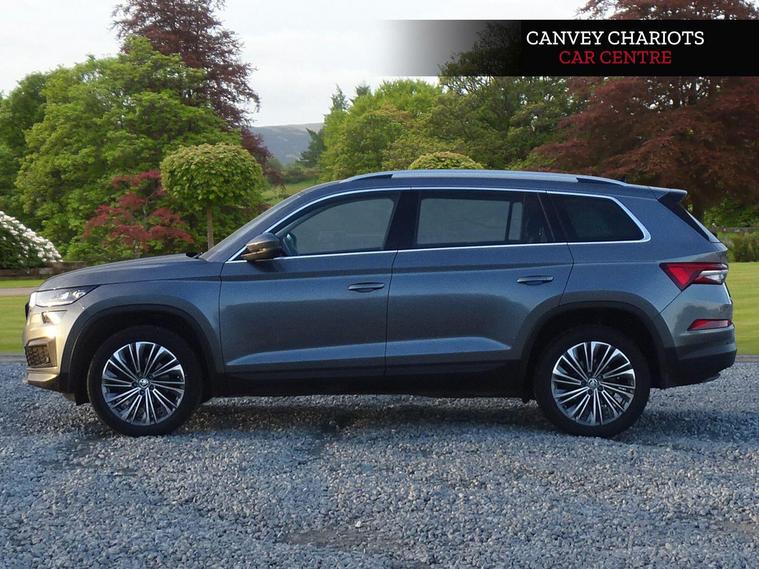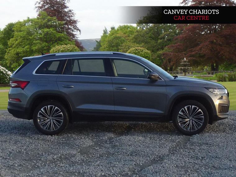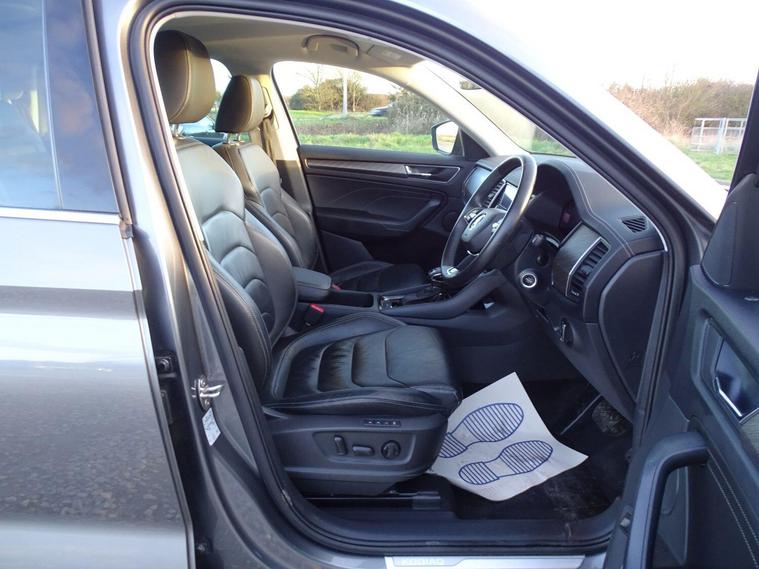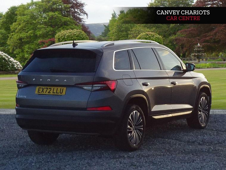 This 2022 Skoda Kodiaq TSI SE L Executive is a truly exceptional find, boasting incredibly low mileage of just 19, 000 miles from its single owner. This Euro 6 compliant 1.5 litre petrol engine SUV offers spaciousness for up to seven occupants, making it a practical choice for families. The SE L Executive trim level ensures a well equipped interior, featuring convenient wireless charging for your devices, heated front seats for added comfort during colder journeys, and dual zone climate control with a humidity sensor to maintain the perfect cabin temperature. Furthermore, the electrically adjustable driver's seat includes a memory function, allowing you to easily recall your preferred seating position, and Bluetooth connectivity keeps you connected on the go.The performance of this Kodiaq is also noteworthy, with a brisk 0-60mph acceleration time of 9.5 seconds, demonstrating its capable 1.5 litre petrol engine. These highlights, combined with its excellent provenance and comprehensive feature set, position this Skoda Kodiaq as a superior option compared to other vehicles in its class. Its low mileage and single owner history indicate a well cared for vehicle, offering peace of mind for its next owner..