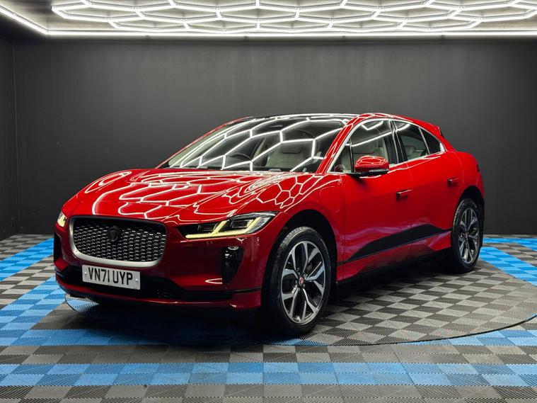 Here at Motor Gurus we are delighted to offer a Jaguar I-PACE 400 90kWh HSE Auto 4WD. This vehicle is in immaculate condition inside and out. This specific vehicle is finished in a GLOSS RED and is contrasted by a WHITE LEATHER interior. This vehicle comes included with: FRONT & REAR PARKING SENSORS, REAR PARKING CAMERA, ELECTRIC TAILGATE, MERIDIAN SURROUND SOUND SYSTEM, FIXED GLASS ROOF, FRONT ELECTRIC/MEMORY/HEATED/VENTED SEATS, REAR HEATED SEATS, HEATED STEERING WHEEL, ADAPTIVE CRUISE CONTROL, AUTOMATIC ADAPTIVE DRIVING HEADLIGHTS, TWIN CUPHOLDERS, AUTO HOLD, DRIVING MODES, CLIMATE CONTROL, SAT NAVIGATION, DAB RADIO, BLUETOOTH AUDIO, TELEPHONE CONNECTIVITY, APPLE CARPLAY, TYRE PRESSURE MONITORING, CLEAR EXIT MONITORING SYSTEM AND MUCH MORE! Our Jaguar I-PACE 400 90kWh HSE Auto 4WD has come to us with FULL DEALERSHIP SERVICE HISTORY, 2 KEYS and is a 1 OWNER FROM NEW! We will also provide this vehicle with a 12 MONTH MOT as well as a FRESH OIL SERVICE before it leaves our premises (OTR)..