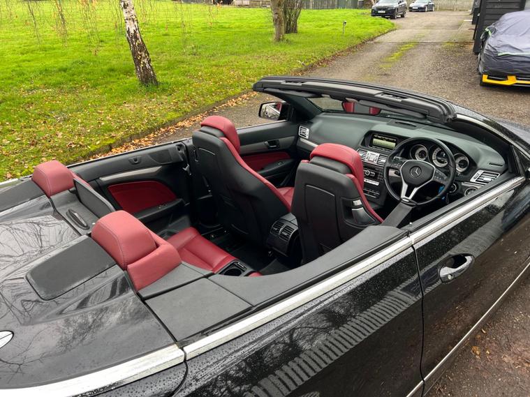 By appointment onlyDiscover the rare spec & fantastic MB E Class cabriolet at Woodland Prestige! Finished in Obsidian black metallic with bengal red (dark) interior. 12 Mercedes services on record. Last being in Oct 2025.Stunning colour, nice Spec - Automatic, diesel and in excellent condition. Bluetooth Audio & media Sat nav and CD ChangerHeated leather seatsRare air scarf This extraordinary MB boasts a plethora of options, making it an absolute head-turner. It comes with full MB service history and has been meticulously cared for with low miles mileage. Visit our Website - dealer's website Nationwide Delivery AvailablePart Exchange WelcomeFinance from 9.9% APRYour purchase includes:6-Month Extendable WarrantyFresh 12-Month MOTExperience peace of mind with your purchase from us. Woodland Prestige is a 5-star rated business on Google and AutoTrader. We also provide:12-Months AA Breakdown CoverDrive-Away InsuranceAA Assured SchemeBuy with confidence, and explore financing options on our website: dealer's website Only - Enquire today and reserve your dream car!''.