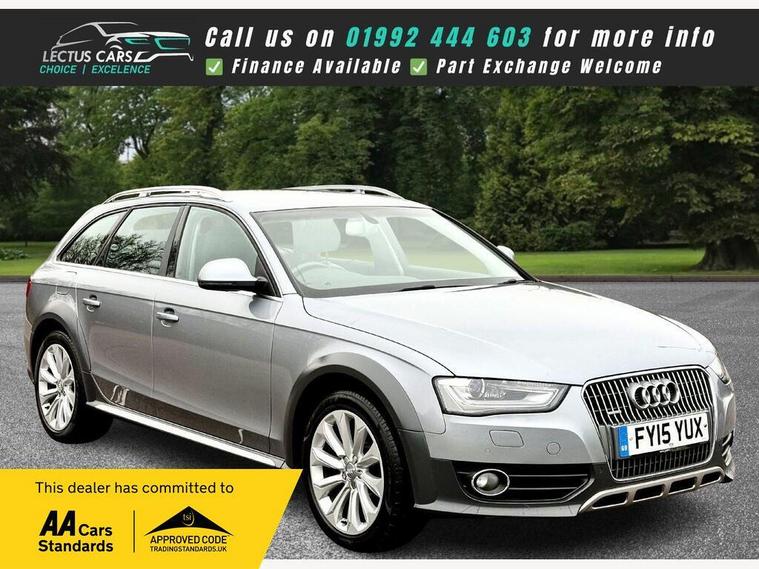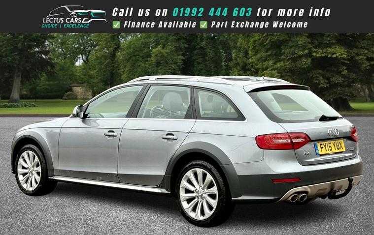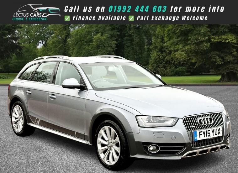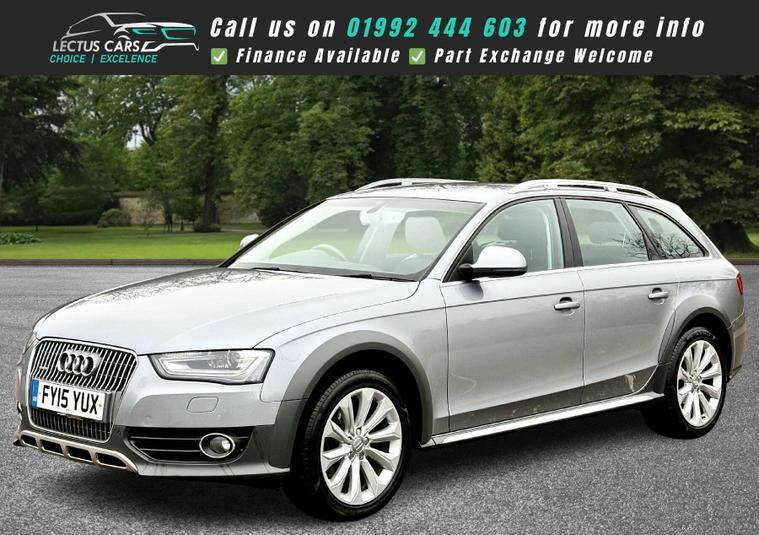 Finished in Tornado Grey Metallic with full black leather upholstery this 2015 Audi A4 Allroad TDI boasts an impressive provenance, having been owned by just one careful keeper from new. With a low mileage of 84, 350 miles for its age and a full Main dealer service history, including a recent service on 2024-09-16 at 77, 155 miles, this car has been meticulously maintained. It comes with an MOT valid until August 2026, and it will be serviced by us prior to sale offering peace of mind. The 2.0 litre diesel engine paired with four wheel drive ensures capable performance in various conditions. Notable features include automatic headlights with a light sensor, Bluetooth mobile telephone preparation, rear parking sensors for easier manoeuvring, and a three zone electronic climate control system for passenger comfort plus Heated front seats. Cruise control helps maximise your fuel economy on a run. The power operated tailgate adds a touch of convenience. DAB Digital Radio with Audi Sound System includes Voice Control satellite navigation.The performance of this Audi A4 Allroad is further enhanced by its acceleration, reaching 0-62mph in just 8.1 seconds, demonstrating its responsive nature. These attributes, combined with its single owner history and comprehensive servicing, suggest this vehicle offers a superior ownership experience compared to others on the market. A 6 month warranty is also included, providing additional confidence in your purchase.See the video in the advert or use this link: https://youtu.be/Ge3LvfEkY28?si=yeOY4OzfoFigXKP20% Deposit when financing through us.DELIVERY AVAILABLE. The Car Comes With A 6 Month Premium Nationwide Parts And Labour Warranty Finance Available From 10.9 % Apr All Inspections Welcome AA/RAC Px Welcome Viewing By Appointment Only Please Call John On 01992692105 Or 01992692105.