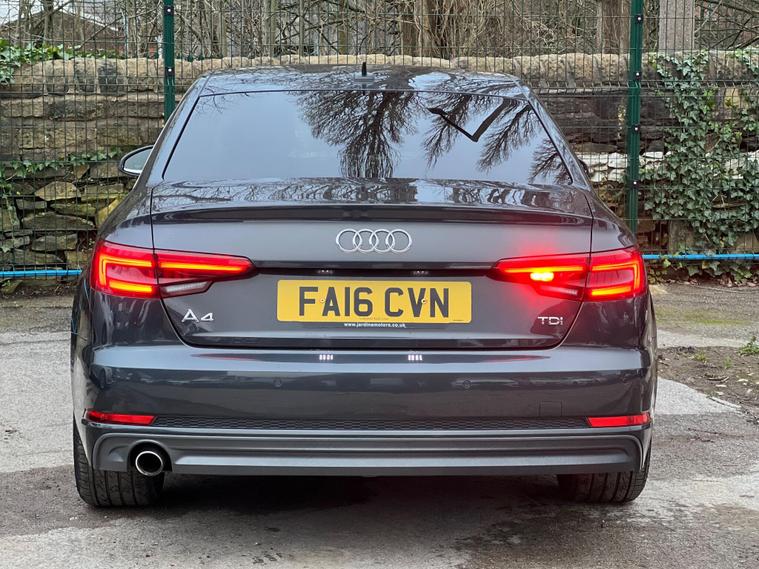 Smart and refined Audi A4 S line finished in sleek grey, offering a perfect blend of performance, comfort and efficiency. Powered by the strong and economical 2.0 TDI diesel engine paired with the smooth S Tronic automatic gearbox, delivering an effortless and enjoyable drive. Fully Euro 6 and ULEZ compliant, ideal for both city and motorway use.2016 (16) Registration – FA16 CVN88, 000 miles2.0 TDI DieselS Tronic Automatic TransmissionEuro 6 / ULEZ Compliant4 Door Saloon2 Previous OwnersS line Specification Includes:S line exterior styling & sports suspensionHalf leather / Alcantara sports seatsAlloy wheelsSatellite navigationBluetooth & media connectivityDAB radioCruise controlDual-zone climate controlFront & rear parking sensorsLED daytime running lightsMulti-function steering wheel***EXTENDED WARRANTY AVAILABLE****DUE TO HIGH DEMAND WE RECOMMEND A VIEWING IN ADVANCE, which you can do via the website or by calling us at +44 7349 390791.Our friendly team will look after you before, during and after the sales. We will help you with taxing the vehicle, completing official forms, and we will make sure that you, your family and loved ones are safe on the road. We also offer a wide range of warranties and finance to meet your needs. WHO WE AREWe are a car dealership with 16 years of experience, based in Clarence Street, Stalybridge, SK15 1QF. We are 100% sure that we can find you the right vehicle as we offer over 150 cars for sale at any time. OUR QUALITY PROMISE- Every car comes with our FREE 3 Months warranty- We offer a fresh MOT for all vehicles due for one within the next 3 months. - All our vehicles are HPI Clear and undergo a 39-Point check, conducted by professional inspectors. - Every vehicle is valeted and sanitised to a high standard. - We are able to offer delivery nationwide at competitive prices, don't hesitate to contact us for a quote.FINANCE, PART EXCHANGE OR A STRAIGHT PURCHASE IS AVAILABLE. QPX Wheels Team.https:/ dealer's website
