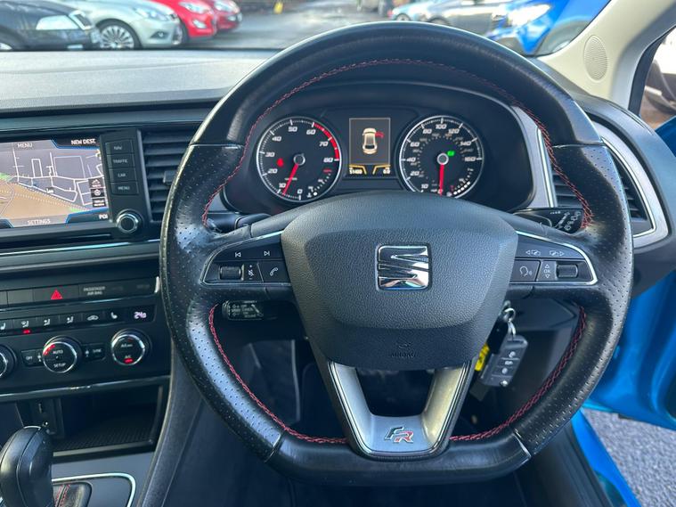 This 2016 SEAT Leon EcoTSI FR is a truly exceptional find, boasting an incredibly low mileage of just 50, 000 miles from its single owner. This Euro 6 compliant 1.4 litre petrol engine, presented in the sporty FR trim, offers a compelling blend of performance and efficiency. Inside, you'll discover a wealth of notable features designed for comfort and convenience, including steering wheel mounted gearshift paddles for an engaging driving experience, and dual zone climate control to keep everyone comfortable. The Media System Colour, complete with Bluetooth connectivity for both music streaming and phone calls, ensures you stay connected on the go, while rear parking sensors provide added peace of mind when manoeuvring.The SEAT Leon EcoTSI FR truly stands out from the crowd. Its impressive fuel economy of 58 mpg means fewer trips to the petrol station, making it an economical choice for everyday driving. Furthermore, its brisk acceleration, achieving 0 to 62 miles per hour in just 8.0 seconds, demonstrates its lively performance. Practicality is also a strong suit, with generous boot space ready to accommodate your shopping or luggage. These highlights collectively showcase why this particular SEAT Leon is a superior option for those seeking a well maintained, efficient, and enjoyable vehicle..