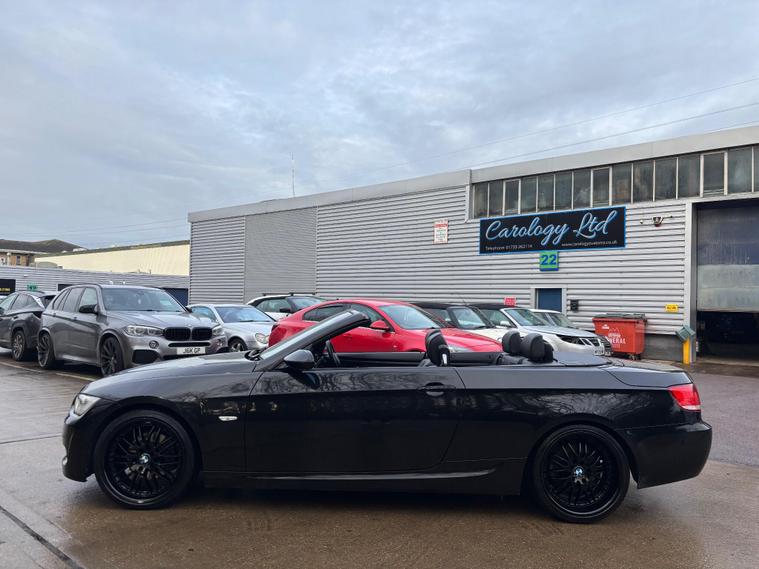 VERY CLEAN LOW MILEAGE BMW 3 SERIES DIESEL CONVERTIBLE - EXCELLENT SERVICE HISTORY - HPI CLEAR - BRAND NEW DECEMBER 2026 MOT - JUST SERVICED - GORGEOUS LOOKING CAR IN EXCELLENT CONDITION - 3 MONTHS NATIONWIDE WARRANTY INCLUDED - LOOKS & DRIVES SUPERB +++ Carology LTD are pleased to offer this beautiful low mileage BMW 320d M Sport convertible finished in sapphire black metallic. It comes with an excellent service history consisting of 5 BMW main dealer stamps and 1 independent and it also has a brand new 12 month MOT until December 2026. We have just carried out an annual service as part of our own preparation which included replacing the engine oil and oil filter, fitting a new air filter, new pollen filter plus replacing both front lower suspension arms so its ready to drive away. Overall this is a lovely example is in excellent condition, the bodywork is very good, the interior still looks bright and clean plus we have just refurbished the alloy wheels in black pearl which has really finished her off. This is really clean example, drives really well and offers excellent economy and performance. +++ FULL VOSA HISTORY REPORT TO VERIFY MILEAGE, HPI CLEAR, AA APPROVED DEALER, NATIONWIDE DELIVERY AVAILABLE, 3 MONTH COMPREHENSIVE WARRANTY INCLUDED - UP TO 24 MONTHS NATIONWIDE WARRANTY AVAILABLE AT COMPETITIVE PRICES - DEBIT & CREDIT CARDS ACCEPTED, PART EXCHANGE WELCOME, 2 KEYS, 12 MONTHS AA BREAKDOWN COVER, ZUTO CAR FINANCE APPROVED DEALER. +++ We are a Saab and Mitsubishi specialist based in Peterborough, Cambridgeshire. We have a fully qualified Saab Master Technician and full Tech 2 Saab and MUT Diagnostic facilities. For further information or to make an appointment to view this car please call us on 01733604498 or you can email us via autotrader or our website anytime. Video walk rounds available immediately via WhatsApp. Viewing by appointment..