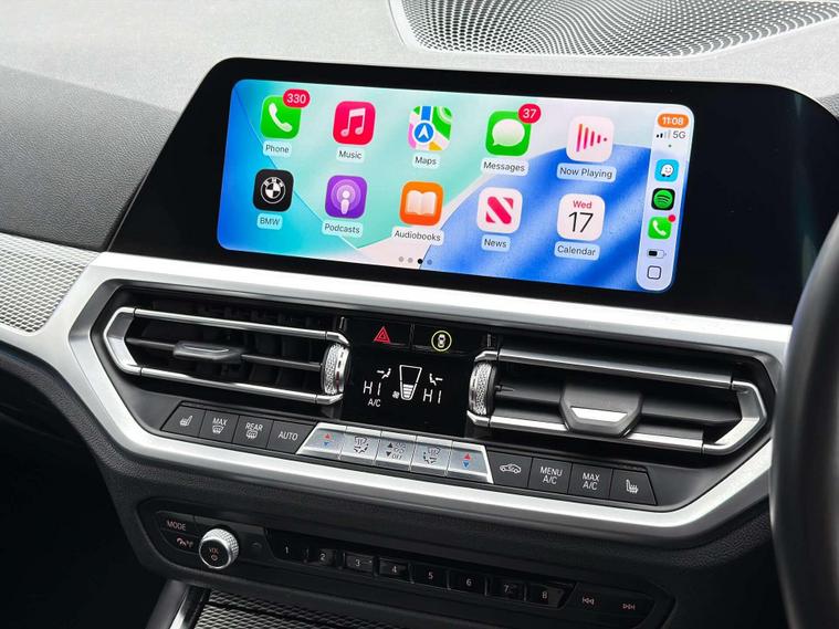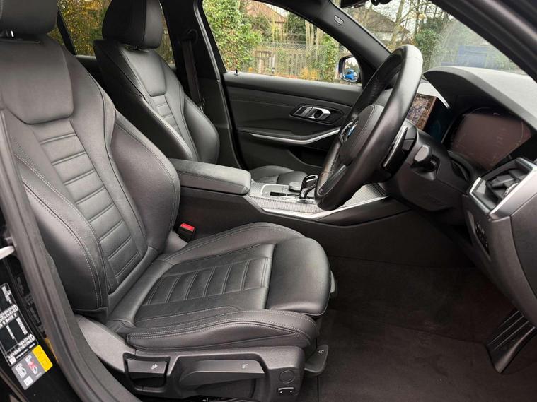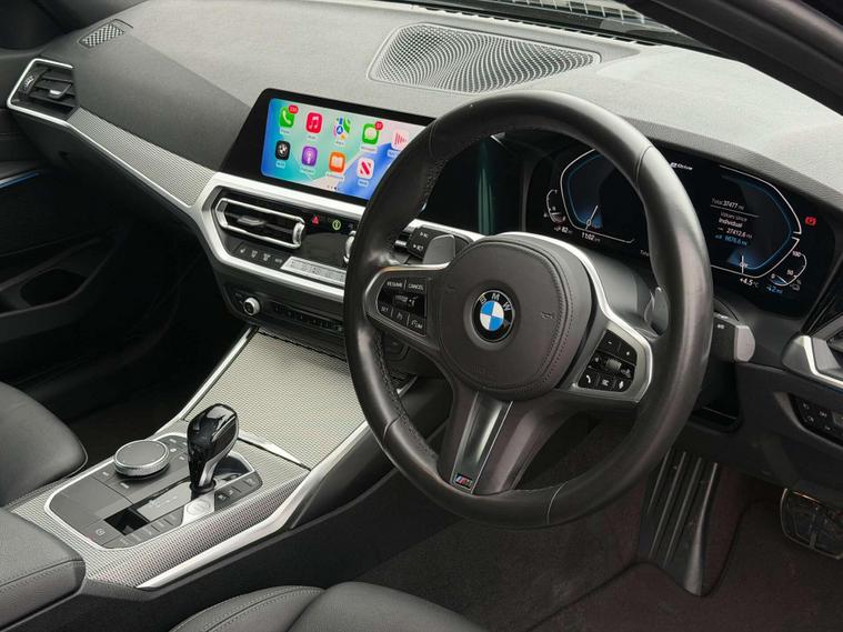 Finished in Black Sapphire Metallic, this 2021 BMW 330e M Sport combines sharp M Sport styling with intelligent plug-in hybrid technology. Enhanced by a full M Performance bodykit, it carries the presence of a performance saloon while offering the efficiency and flexibility that modern driving demands.Sitting on 19-inch M Light Double Spoke 791M alloy wheels in Jet Black, wrapped in run-flat tyres, the stance is purposeful and well judged. Sun Protection Glazing adds a subtle contrast to the exterior, while the M Sport Pro Package completes the look with darker, more aggressive factory detailing.Inside, the cabin is finished in Black Vernasca leather with grey contrast stitching, creating a refined yet sporty environment that feels premium, solid and driver-focused. Everything is exactly where you expect it to be, reinforcing the quality and usability BMW is known for.This example has had just one owner from new and benefits from a full BMW service history, offering peace of mind and clear provenance. The plug-in hybrid powertrain delivers smooth, responsive performance with the ability to run on electric power for shorter journeys, making it ideal for commuting and city driving, while still retaining strong on-road composure when driving normally.A well-specified, correctly presented 330e in a timeless colour combination, blending M Performance aesthetics with real-world efficiency and excellent ownership history..