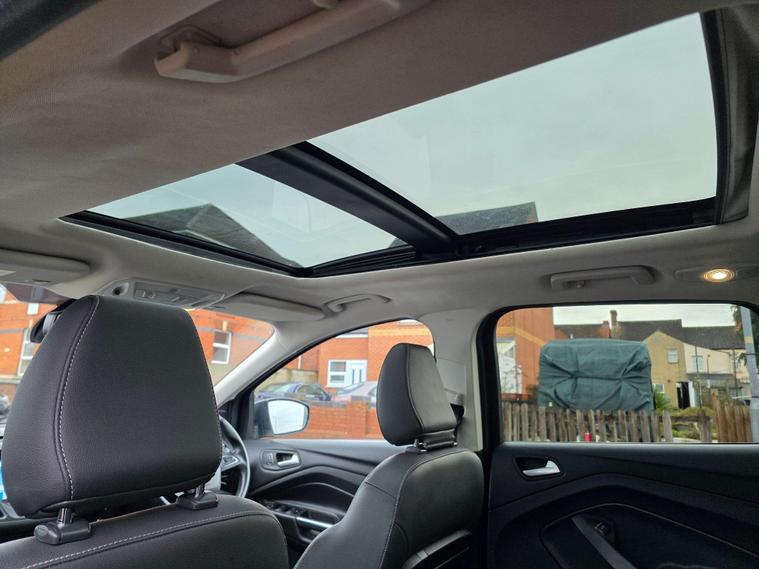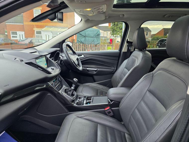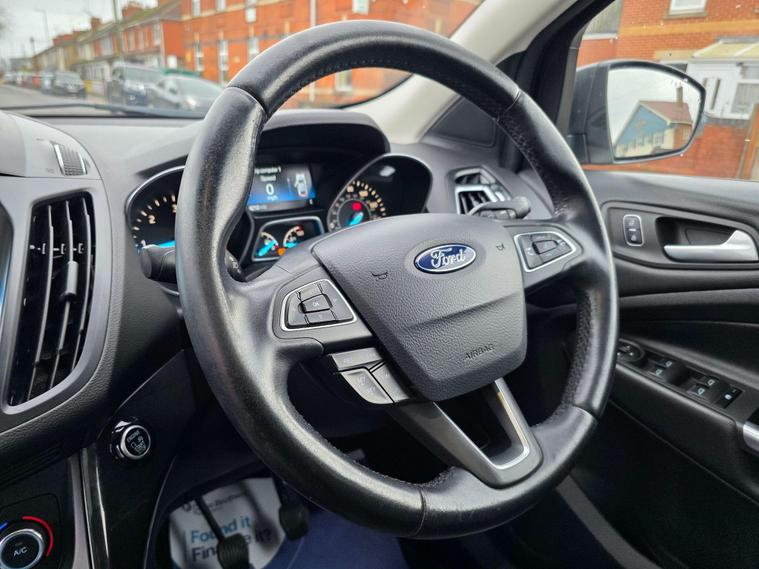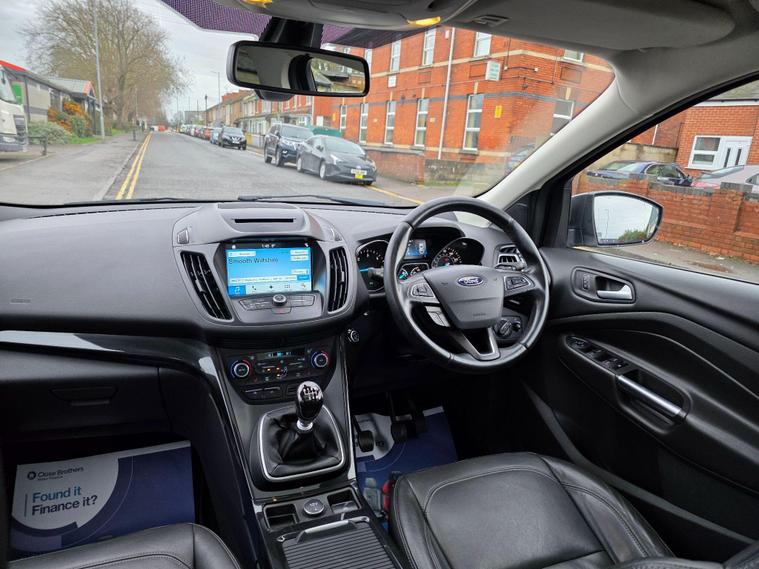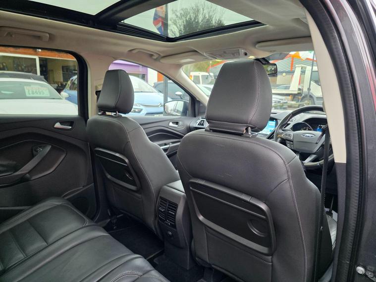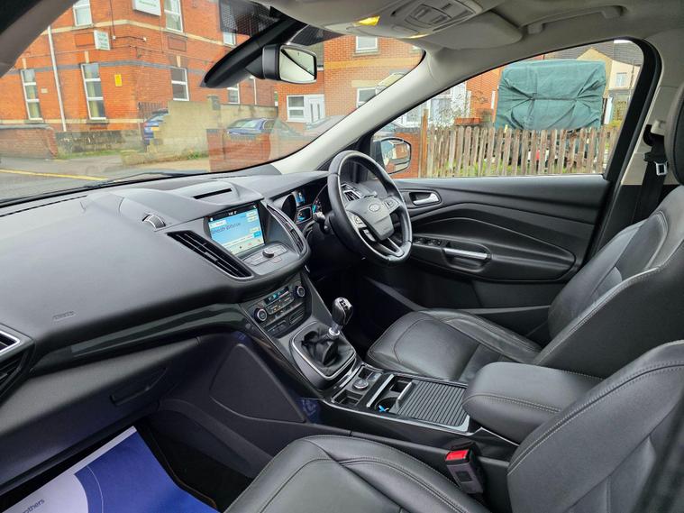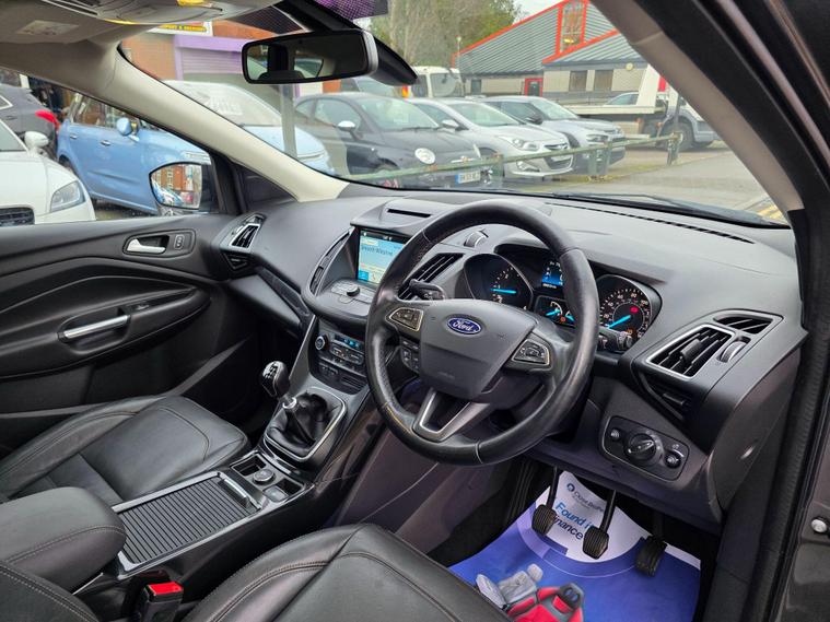 This 2017 Ford Kuga TDCi Titanium X offers an exceptional blend of efficiency and comfort, boasting an impressive fuel economy of 60 mpg. As a Euro 6 compliant vehicle, it also benefits from low CO2 emissions. This model features the desirable Titanium X trim, powered by a robust 2.0L Diesel engine. Keyless opening, including keyless entry, provides effortless access, while the power opening panoramic roof, complete with a panoramic sunroof, floods the cabin with natural light. For added convenience, rear parking sensors assist with manoeuvring, and the heated driver and passenger seats ensure a comfortable journey in all conditions.The DEATC dual-zone electronic automatic temperature control allows both driver and passenger to set their preferred climate, enhancing the overall driving experience. These features collectively demonstrate how this Ford Kuga stands out from other vehicles in its class, offering a superior combination of advanced technology, comfort, and economic running costs..