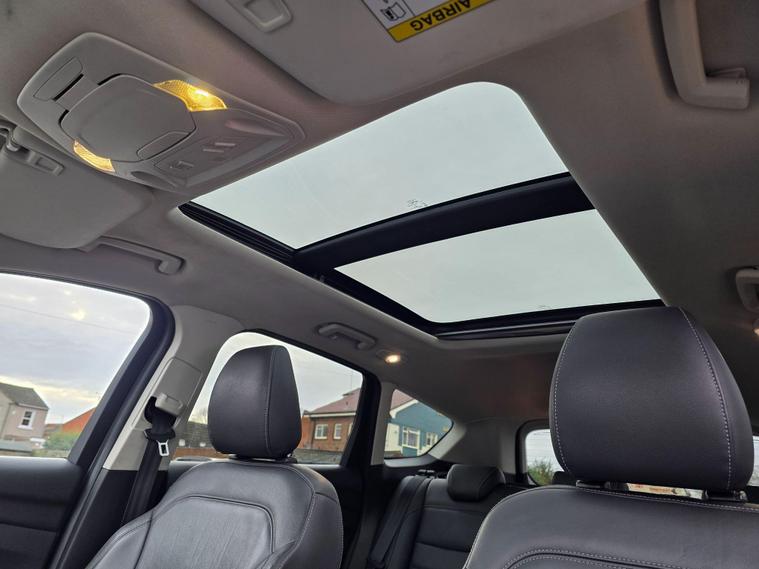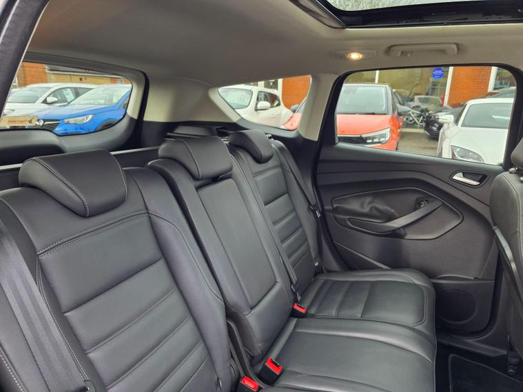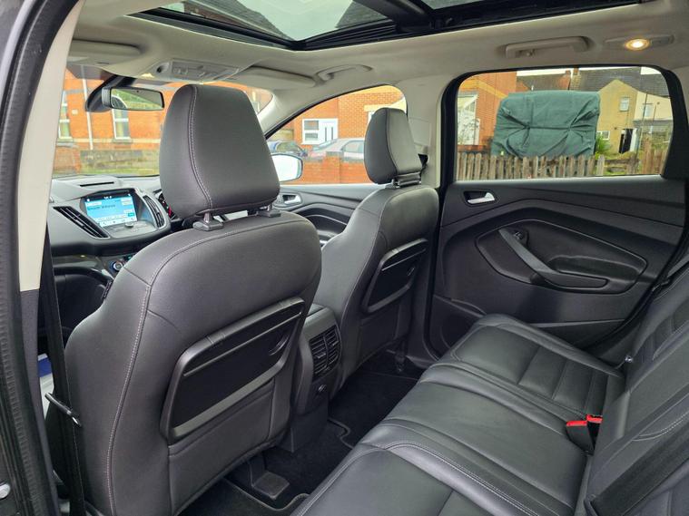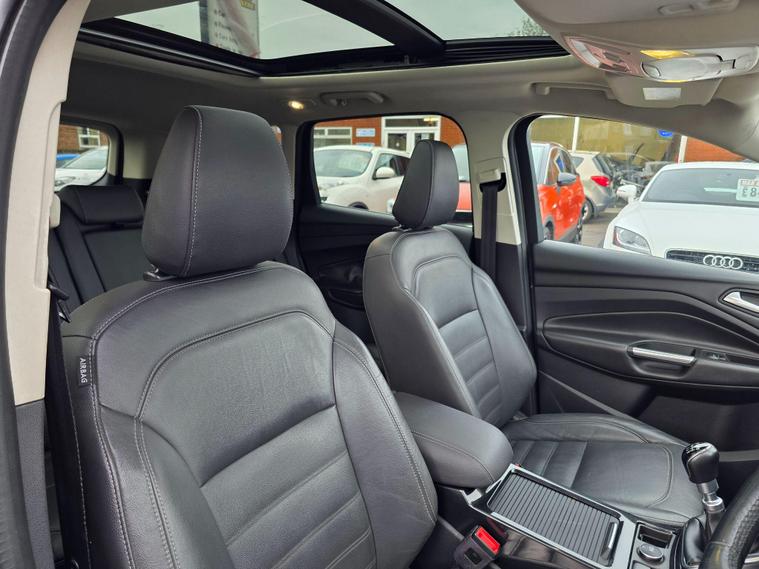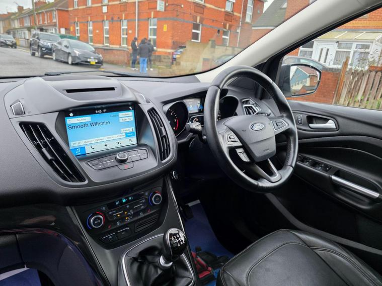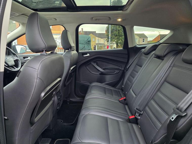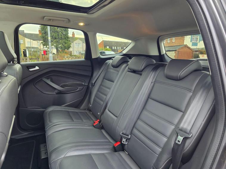 This 2017 Ford Kuga TDCi Titanium X offers an exceptional blend of efficiency and comfort, boasting an impressive fuel economy of 60 mpg. As a Euro 6 compliant vehicle, it also benefits from low CO2 emissions. This model features the desirable Titanium X trim, powered by a robust 2.0L Diesel engine. Keyless opening, including keyless entry, provides effortless access, while the power opening panoramic roof, complete with a panoramic sunroof, floods the cabin with natural light. For added convenience, rear parking sensors assist with manoeuvring, and the heated driver and passenger seats ensure a comfortable journey in all conditions.The DEATC dual-zone electronic automatic temperature control allows both driver and passenger to set their preferred climate, enhancing the overall driving experience. These features collectively demonstrate how this Ford Kuga stands out from other vehicles in its class, offering a superior combination of advanced technology, comfort, and economic running costs..