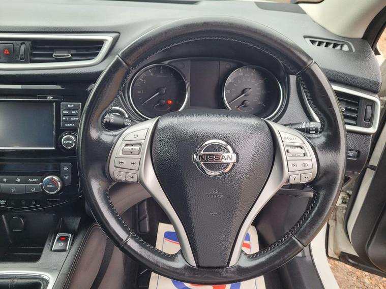This 2016 Nissan Qashqai DIG-T Tekna has been cherished by only two owners, offering a well maintained example of this popular model. Powered by an efficient 1.6 litre petrol engine, this Euro 6 compliant vehicle combines practicality with a smooth driving experience. The Tekna trim level ensures a host of desirable features, including automatic Bi-LED headlights for enhanced visibility, and front and rear parking sensors to make manoeuvring effortless. Stay connected on the go with seamless Bluetooth integration for your telephone.Experience impressive performance with an acceleration of 0-62mph in just 9.1 seconds, demonstrating its capable 1.6 litre engine. This Qashqai also stands out with its low CO2 emissions, contributing to a more environmentally conscious drive, and benefits from a low insurance group, making it an economical choice for many drivers. These factors indicate that this Nissan Qashqai offers a compelling blend of performance, efficiency, and affordability compared to similar vehicles..