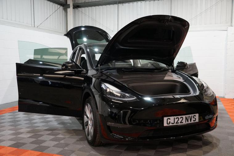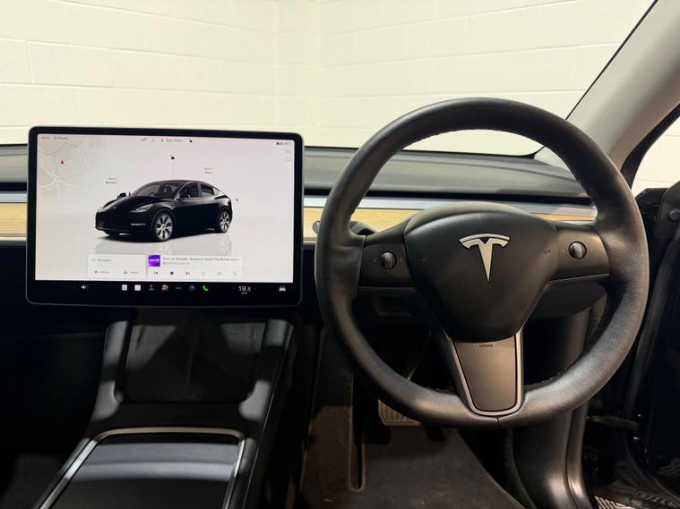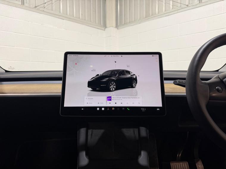 Introducing the Tesla Model Y (Dual Motor) Long Range Auto AWD, finished in Solid Black, a sleek and highly capable all-electric SUV that blends performance, practicality and cutting-edge technology. With its dual-motor all-wheel-drive system, the Model Y delivers strong acceleration, excellent grip in all conditions and an impressive driving range, making it ideal for both daily use and longer journeys.Inside, the cabin is clean, modern and spacious, finished with black leather seats that offer comfort and durability. Both front and rear seats are heated, ensuring passengers stay comfortable whatever the weather, while dual-zone climate control allows the driver and passengers to set their own preferred temperatures. The full panoramic glass roof floods the interior with natural light, giving the cabin an airy and premium feel.Technology is at the heart of the Model Y. The advanced camera system provides 360-degree coverage, supported by front and rear parking sensors and a reversing camera, making parking and low-speed manoeuvres simple and stress-free. Tesla’s Sentry Mode offers added peace of mind by monitoring the vehicle when parked, while Arcade Mode adds a fun element, allowing passengers to enjoy built-in games when stationary.Quiet, smooth and packed with innovative features, this Tesla Model Y Long Range offers a refined electric driving experience with everyday usability, generous space and the latest safety and entertainment technology..