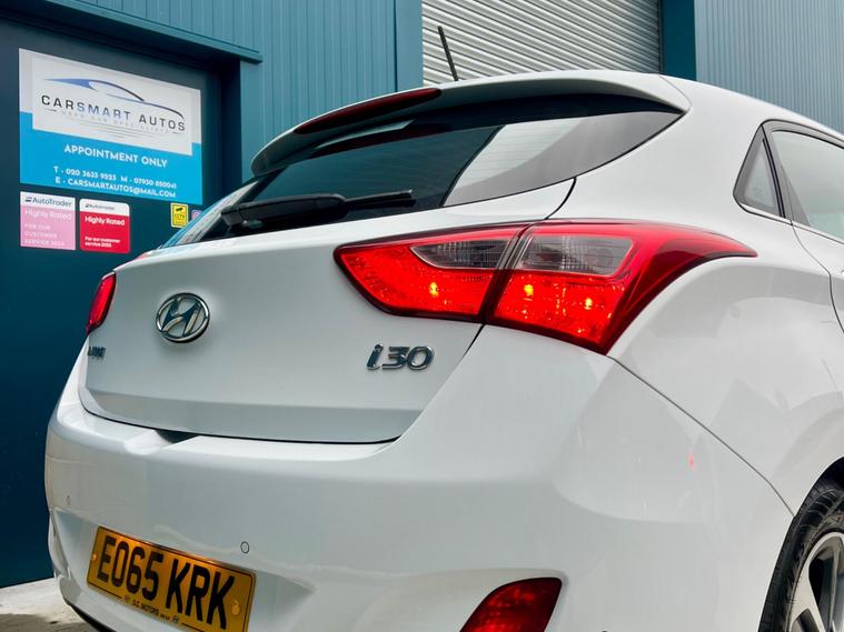 APPOINTMENT ONLY - MORE PICTURES ON OUR WEBSITE - Here we have a Great-Spec 2015 Hyundai i30 1.4 Petrol finished in White which has been Maintained Superbly! This Beauty Drives like a Dream and has just had a Brand New Clutch fitted along with a New Timing Chain and Full Service costing well over £1, 000 with invoices. 2-Previous Owners. HPI Clear. ULEZ. 2 x Remote Keys. MOT to Nov 2026 (Zero Advisories) FULL SERVICE HISTORY with 11-Recorded in total half of which are from Hyundai Main Dealer. Latest Full Service + Spark Plugs @ 94k in Nov 2025. Leather Book-Pack + Manuals & Invoices. Full Black Cloth Interior in Good Condition along with Great Bodywork overall with a couple of minimal imperfections here or there. 4 x Good Thread Tyres. Hyundai Sport Alloy Wheels. Spare Tyre. Sat-Nav. Electric Folding Mirrors. Rear Parking Sensors. Parking-Assist. Rear-Camera. Comfort/ Sport Steering Modes. Cruise-Control. Privacy Glass. Ambient Lighting. Bluetooth. Mobile Phone Connection. Traction Control. LED Rear Lights. Voice Control. Auto Engine Start/ Stop Button. Touch-Screen Entertainment. Air-con. Cd/ Radio/ Aux/ Usb/ iPod. Media Player. Multifunctional Steering Wheel. Electric Windows. Leather Arm-Rest. Isofix. Cupholders. Locking Wheel Nut — CarSmart Autos are an FCA Regulated 5* Rated Company on all Platforms & Winner of the ‘HIGHLY-RATED’ Autotrader Award for 2025! We are also Approved by AA Cars Trading Standards which gives the Ultimate Reassurance to all Customers! We Specialise in the supply of Quality used Cars to the public in Essex, London, Hertfordshire & the wider area. All Cars are HPI clear & SERVICED as required. Apply for FINANCE today. PART-EX Available + NATIONWIDE DELIVERY. All Cars are also backed by a 3-Month Market Leading Warranty which includes Recovery & Roadside Assistance for the duration!.