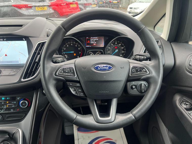 This 2017 Ford C-Max T Titanium boasts a full service history, offering you peace of mind with its well maintained provenance. This Euro 6 compliant 1.0L petrol model comes with the desirable Titanium trim, featuring a Winter Pack for those colder days with heated seats and a heated steering wheel. You'll also appreciate the convenience of the Ford Key Free System with a hands-free power tailgate, allowing for effortless keyless entry and access to the generous boot space. Safety is enhanced with the BLIS Blind Spot Information System and rear parking sensors, while the Ford SYNC2 DAB Navigation System with Bluetooth connectivity keeps you informed and entertained..