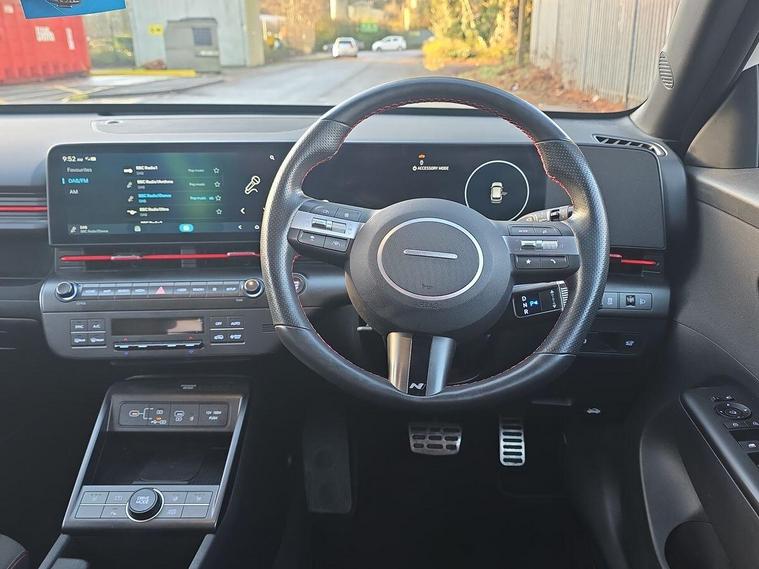 This 2023 Hyundai KONA h GDi N Line presents an exceptional ownership proposition, boasting a full dealership service history and a clear vehicle history check, ensuring complete peace of mind. This one owner vehicle has been meticulously maintained, with its last service performed on 18th December 2025 at 27, 067 miles. The KONA is equipped with a 1.6L Petrol Hybrid engine, meeting Euro 6 emission standards, and benefits from an MOT valid until September 2026, alongside a substantial 32 months of remaining warranty.The Hyundai KONA h GDi N Line stands out with its impressive fuel economy, achieving an excellent 60 mpg, which indicates it is more economical than many similar vehicles. Furthermore, its low CO2 emissions and low insurance group highlight its cost effectiveness for everyday driving. This combination of efficient performance, strong provenance, and appealing running costs makes this KONA a sensible and attractive choice..