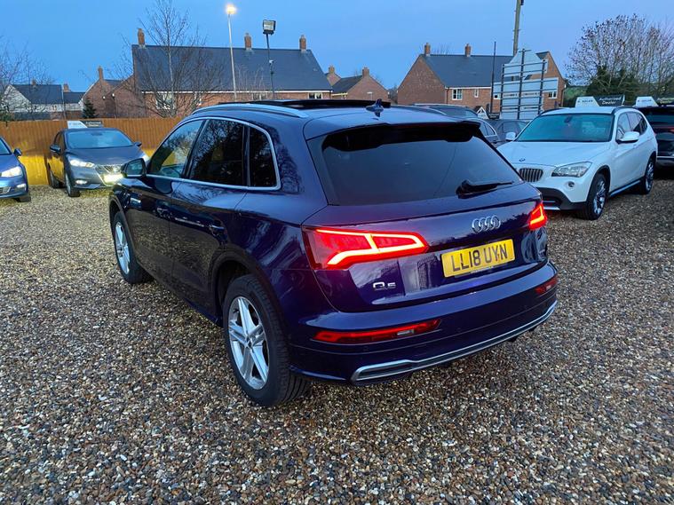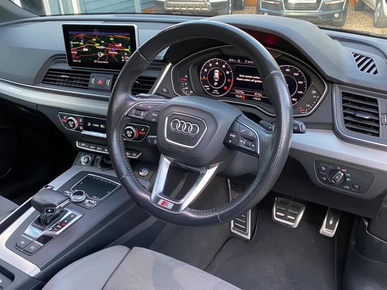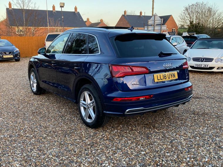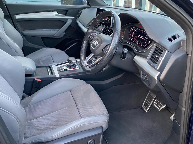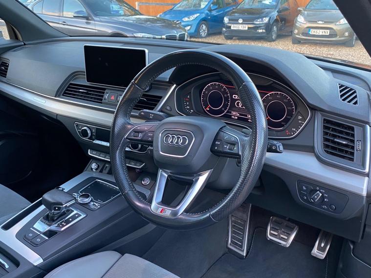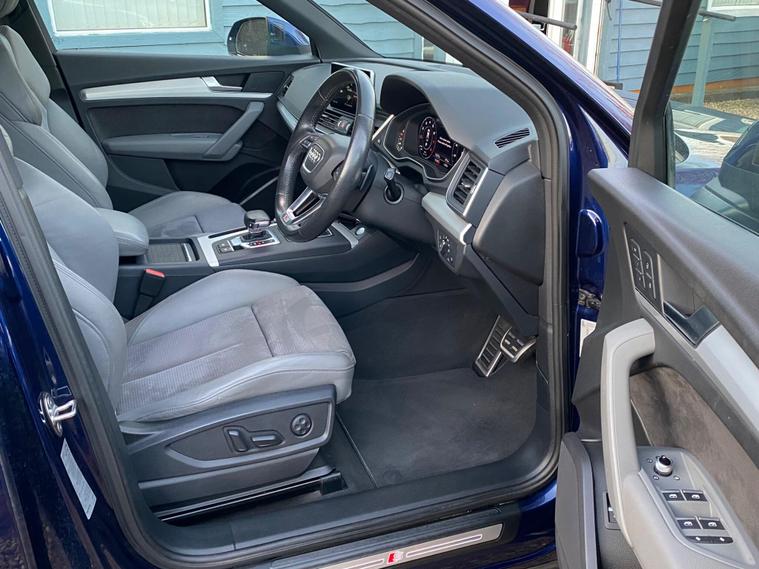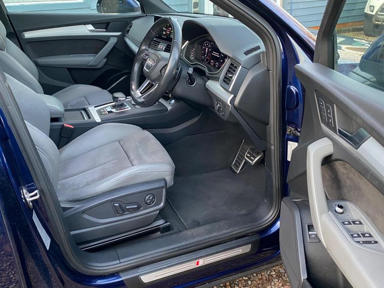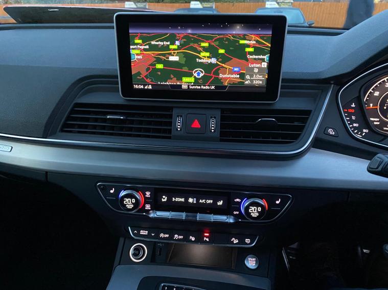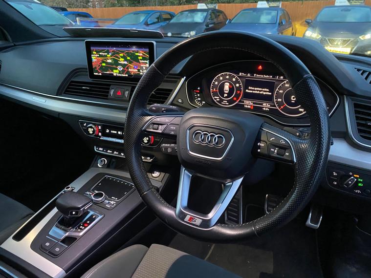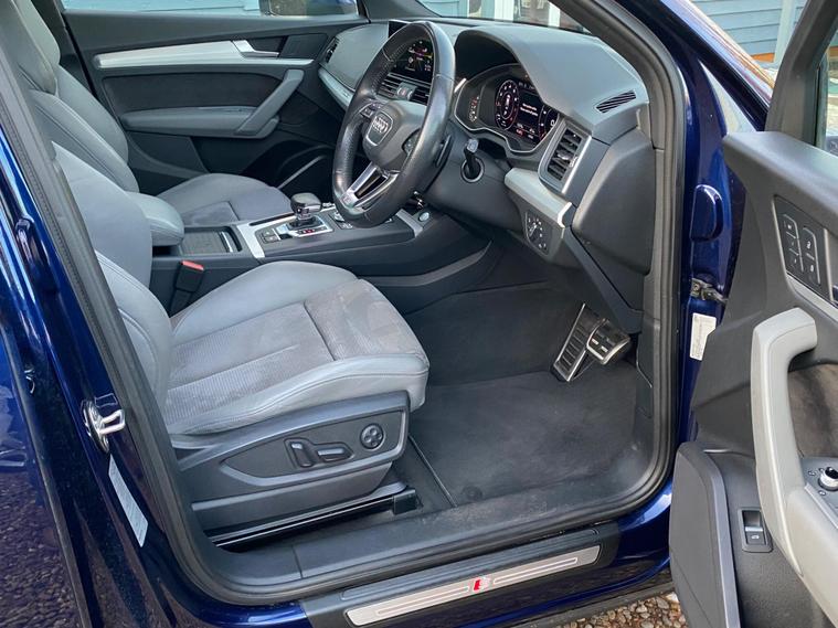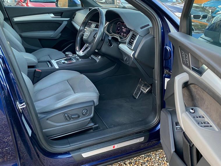 This Audi Q5 TFSI S line from 2018 boasts a clear main dealer vehicle history and has had only one owner, offering you peace of mind. Powered by a 2.0 litre petrol engine and featuring Four Wheel Drive, this Euro 6 compliant model is ready for any journey. Its S line trim ensures a premium feel, complemented by a generous boot space perfect for all your needs. You'll also appreciate the convenience of Bluetooth connectivity, automatic LED headlights with dynamic rear indicators, and the Light and Rain Sensor for effortless driving.Experience impressive performance with an acceleration of 0-62mph in just 6.3 seconds, demonstrating its dynamic capability. The Audi Parking System Plus, with front and rear sensors, makes manoeuvring simple, while the Deluxe 3-Zone Climate Control ensures comfort for everyone on board. With a substantial towing weight of 2400 kg, this Q5 is as practical as it is refined, setting it apart from other vehicles in its class..