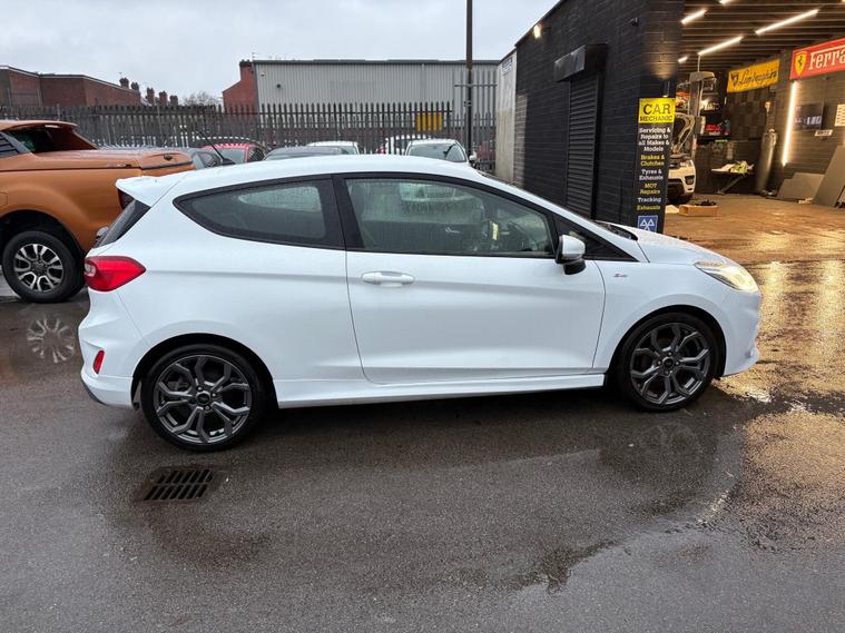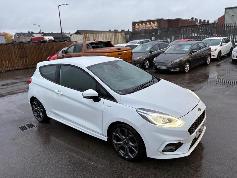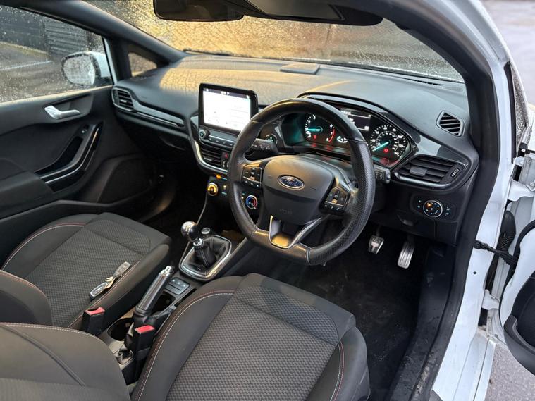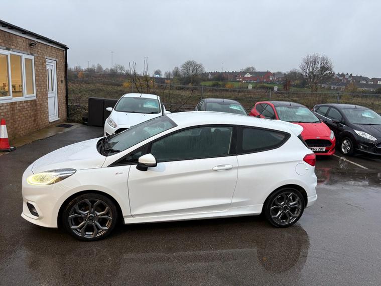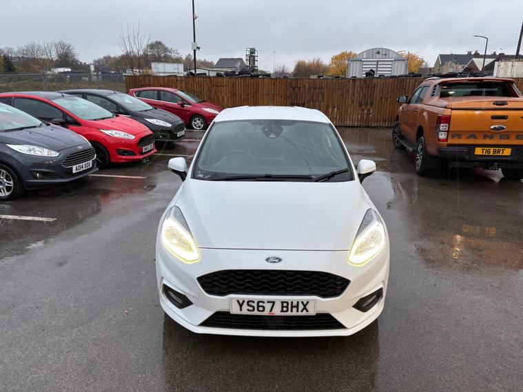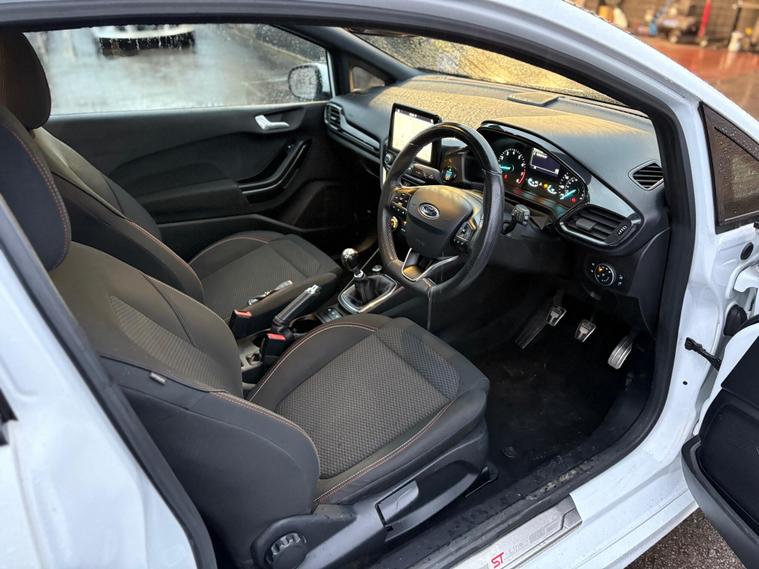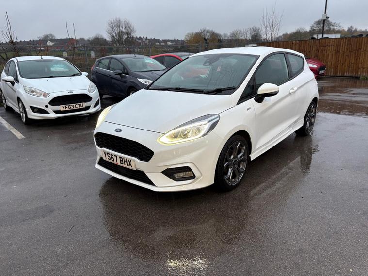 STUNNING ICE WHITE FIESTA ST LINE HIGHLY SOUGHT AFTER CAR FULLY LOADED WITH GOOD OPTIONS INC SAT NAV FORD SYNC GREY ALLOY WHEELS THIS CAR IS THE PERECT FIRST CAR BEINGAN APPROVED USED CAR FROM OURSELVES IT WILL BE FULLY INSPECTED IN OUR WORKSHOP WILL COME WITH A NEW WETBELT WITH A 3 YEAR WET BELT TECH WARRANTY AND 3 MONTHS WARRANTY ON THE CAR WHICH IS UPGRADEABLE TO 12 MONTHS SO BUY WITH CONFIDENCE This 2017 Ford Fiesta ST Line is a superb example, boasting a clear vehicle history check and having had only two owners from new. It features the responsive 1.0L petrol engine, meeting Euro 6 emissions standards. Inside, you'll find the Ford DAB Radio with Ford SYNC3, offering seamless integration with Apple CarPlay and Android Auto, alongside manual air conditioning for your comfort. The NCAP Pack includes automatic headlights, ensuring they switch on and off as needed for enhanced safety and convenience.Experience impressive efficiency with this Fiesta, achieving an outstanding 66 miles per gallon, which is better than many similar vehicles. Its low CO2 emissions also contribute to its economical running costs. For those who enjoy a spirited drive, it accelerates from 0 to 62 miles per hour in just 10.5 seconds, demonstrating a good balance of performance and economy..