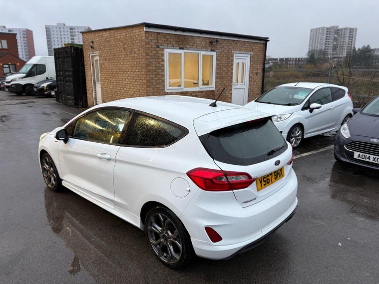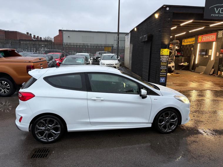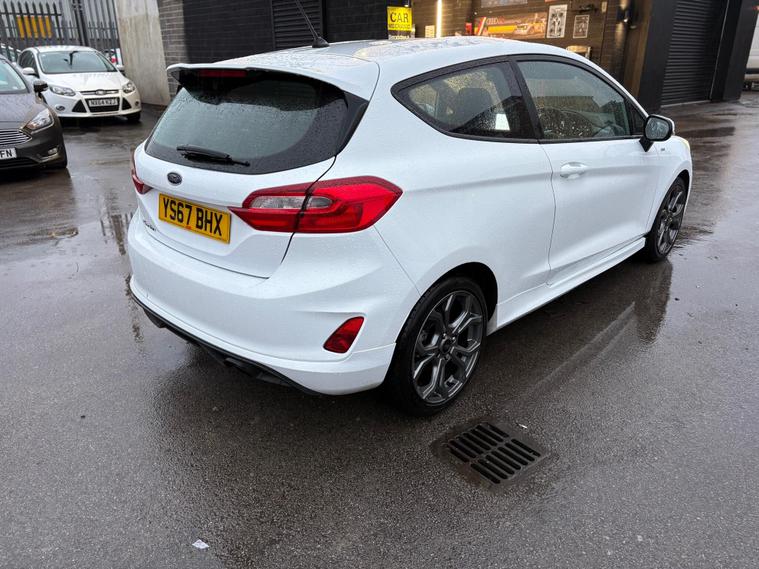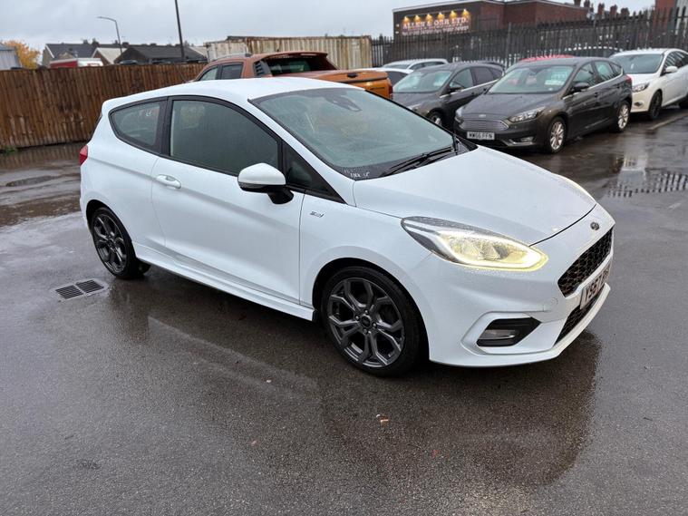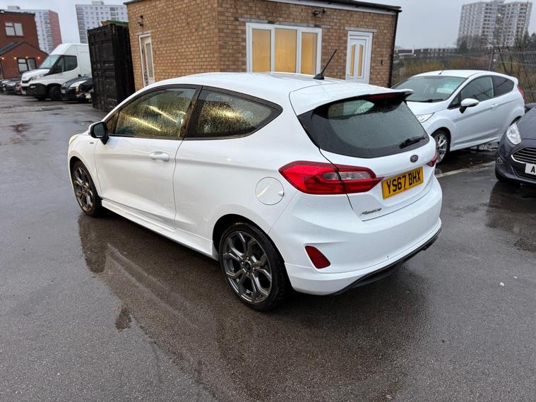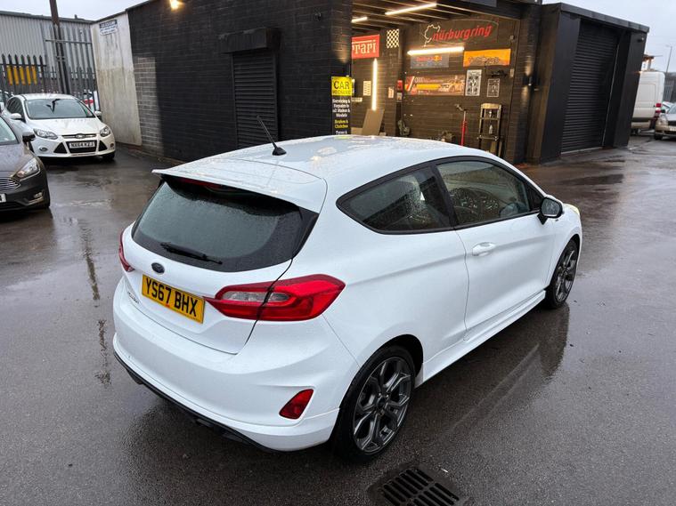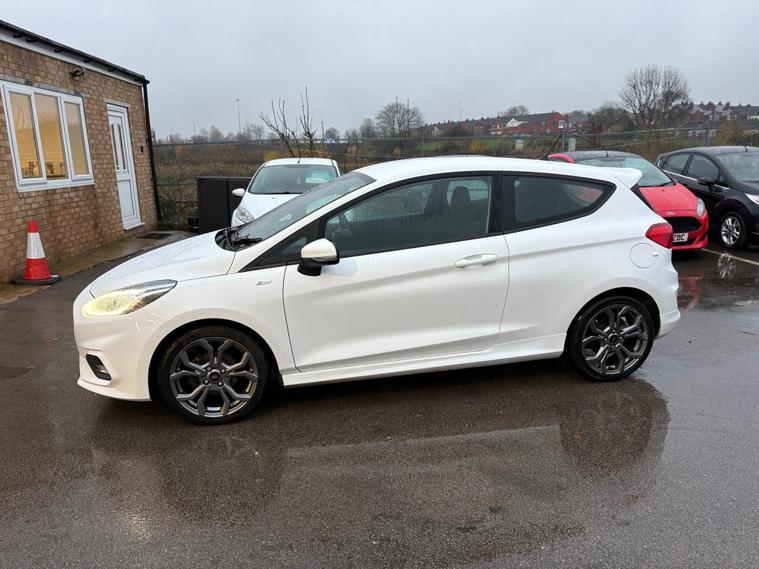 STUNNING ICE WHITE FIESTA ST LINE HIGHLY SOUGHT AFTER CAR FULLY LOADED WITH GOOD OPTIONS INC SAT NAV FORD SYNC GREY ALLOY WHEELS THIS CAR IS THE PERECT FIRST CAR BEINGAN APPROVED USED CAR FROM OURSELVES IT WILL BE FULLY INSPECTED IN OUR WORKSHOP WILL COME WITH A NEW WETBELT WITH A 3 YEAR WET BELT TECH WARRANTY AND 3 MONTHS WARRANTY ON THE CAR WHICH IS UPGRADEABLE TO 12 MONTHS SO BUY WITH CONFIDENCE This 2017 Ford Fiesta ST Line is a superb example, boasting a clear vehicle history check and having had only two owners from new. It features the responsive 1.0L petrol engine, meeting Euro 6 emissions standards. Inside, you'll find the Ford DAB Radio with Ford SYNC3, offering seamless integration with Apple CarPlay and Android Auto, alongside manual air conditioning for your comfort. The NCAP Pack includes automatic headlights, ensuring they switch on and off as needed for enhanced safety and convenience.Experience impressive efficiency with this Fiesta, achieving an outstanding 66 miles per gallon, which is better than many similar vehicles. Its low CO2 emissions also contribute to its economical running costs. For those who enjoy a spirited drive, it accelerates from 0 to 62 miles per hour in just 10.5 seconds, demonstrating a good balance of performance and economy..