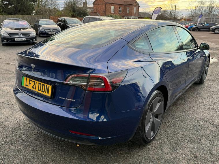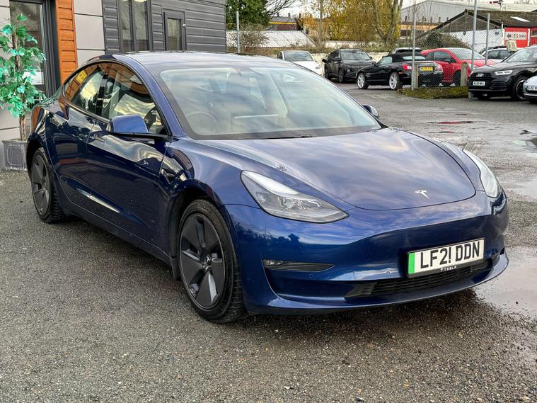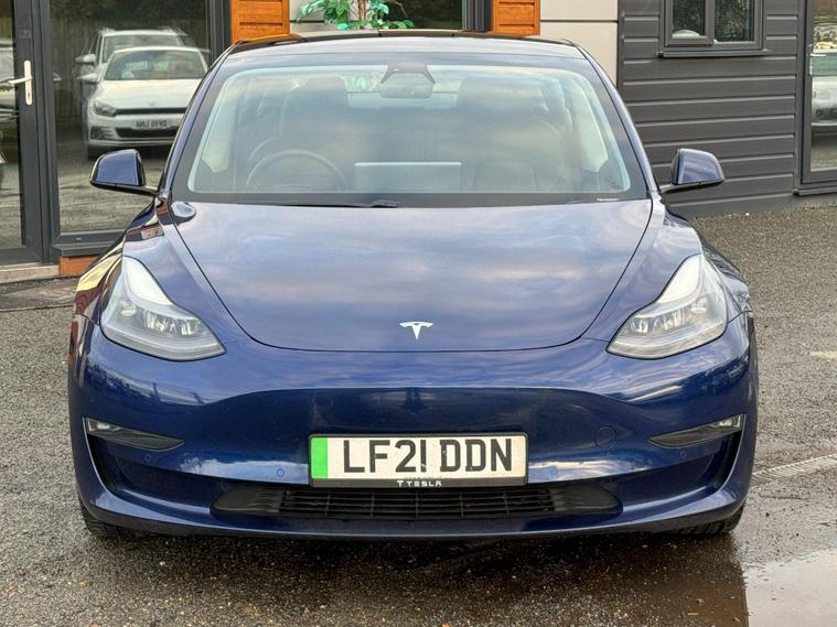 This 2021 Tesla Model 3 Long Range boasts a single owner from new, offering a pristine example of electric motoring. As a Long Range variant, this four wheel drive model features a substantial 78 kWh battery, providing an impressive maximum range of 360 miles when new. Convenience is key with keyless entry and remote control via a dedicated app, alongside front parking sensors and blind spot information to aid your journeys. Inside, you'll find air conditioning for comfort and Bluetooth connectivity for seamless audio and calls.Experience exhilarating performance with the Tesla Model 3 Long Range, capable of accelerating from 0 to 60mph in a remarkable 4.2 seconds, a testament to its electric power. This performance, combined with its extensive 360 mile range, sets it apart from many other electric vehicles. Charging is efficient, with a full charge at home taking approximately 12 hours, while rapid public charging can replenish the battery from empty to 80% in just 26 minutes. Furthermore, the generous boot space ensures practicality for all your needs..
