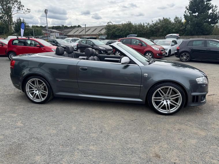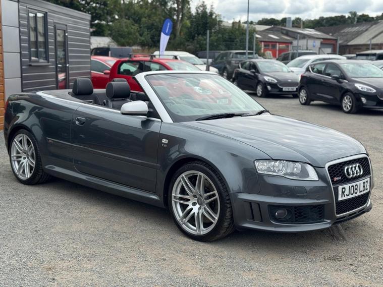 This is an Audi RS4 Cabriolet, registered in 2008. It features a powerful 4.2L petrol engine and a four-wheel-drive system, ensuring a dynamic and engaging driving experience. This car has had only three owners from new and comes with a clear vehicle history check, providing peace of mind.The Audi RS4 Cabriolet stands out with its impressive acceleration, reaching 0-60mph in just 4.9 seconds. This rapid acceleration demonstrates its superior performance capabilities when compared to similar vehicles, offering an exhilarating driving experience..
