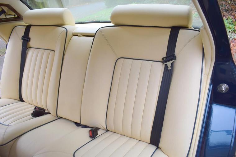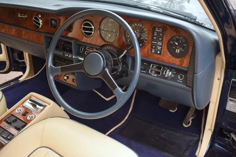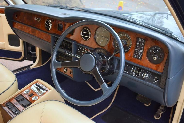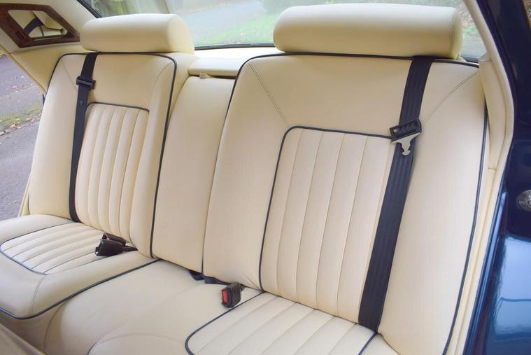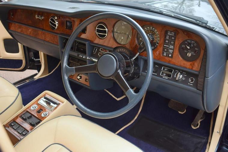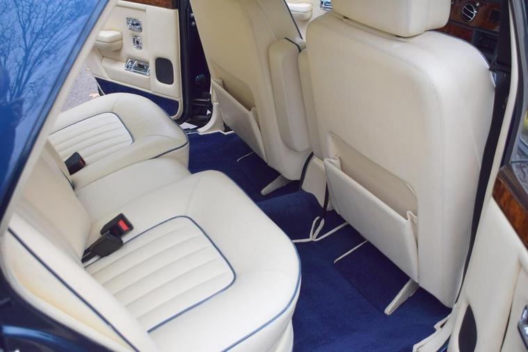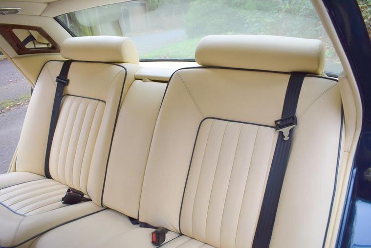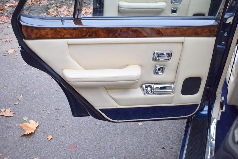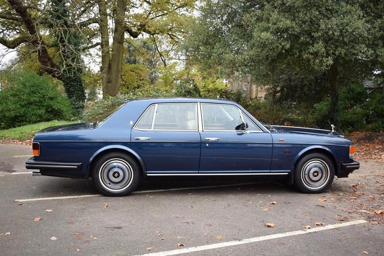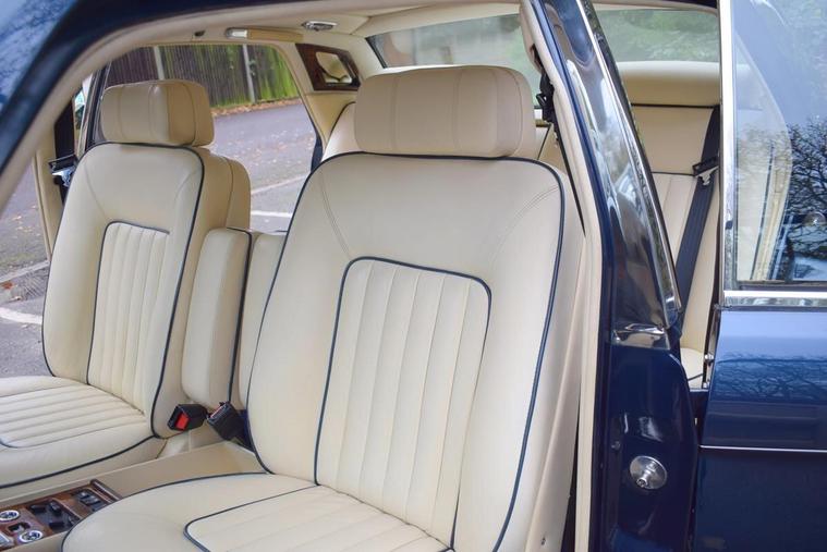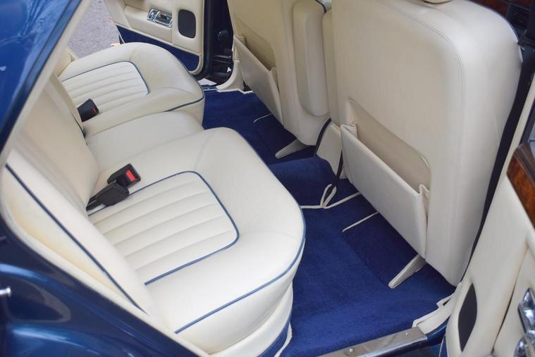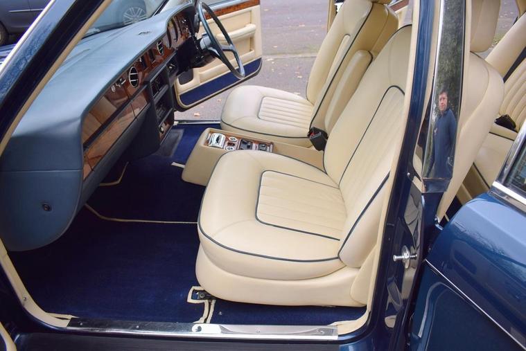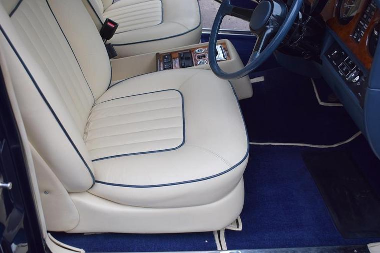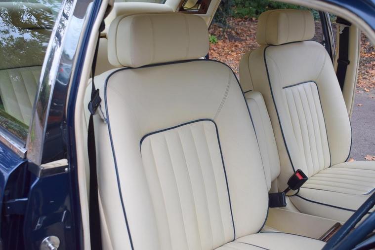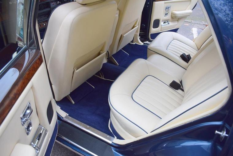 1988 E Rolls Royce Silver Spirit ABS EFI. Finished in Windsor Blue with later style hub caps and Cream coach lines. The interior is in Magnolia leather with French Navy piping and French Navy carpets piped in Magnolia, with Walnut veneers. The car is in perfect condition, only 27, 000 miles from new. Was originally owned by Rolls Royce and registered as RR 1. Immaculate throughout..