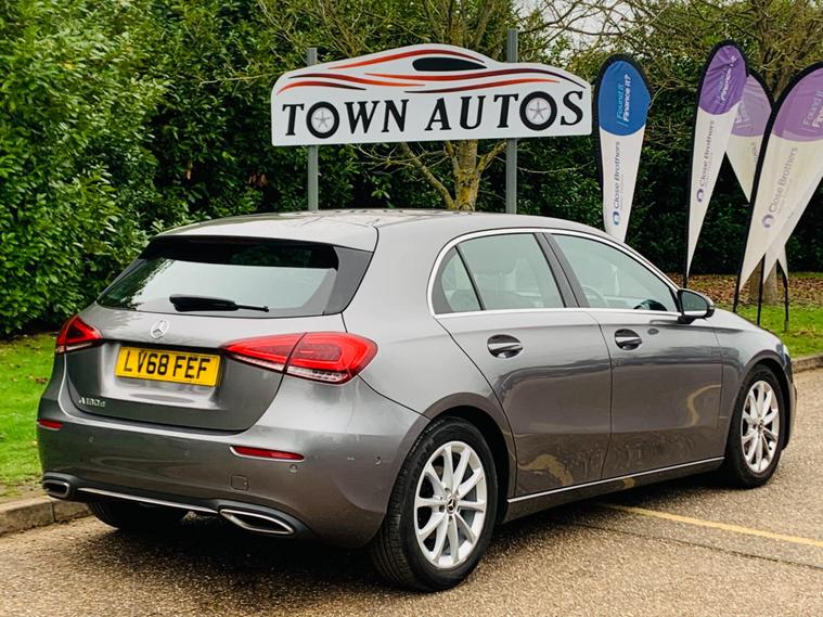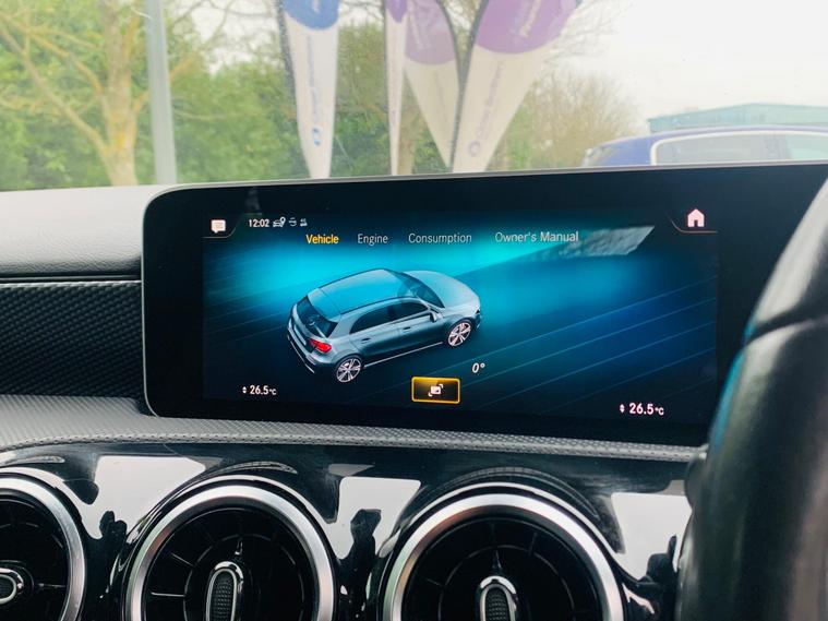 This 2018 Mercedes Benz A Class A180d Sport (Executive) boasts exceptionally low mileage for its age, having covered just 53, 055 miles, and benefits from an MOT valid until November 2026, with a clear vehicle history check. This Euro 6 compliant 1.5L diesel engine offers an efficient driving experience, complemented by the desirable Sport trim and Executive package. Inside, you'll find THERMOTRONIC luxury automatic climate control with two zones and a display, alongside dual Bluetooth connectivity with two USB Type C ports. The convenience of a 180 degree reversing camera with parking guidelines is included, enhancing your parking manoeuvres, while front and rear parking sensors are also part of the Executive package. For added comfort, the seats are heated. The LED High Performance Headlamps with integrated LED Daytime Running Lights ensure excellent visibility. This A Class also features a notably large boot space, providing ample room for luggage or shopping, making it a practical choice for everyday use and longer journeys..